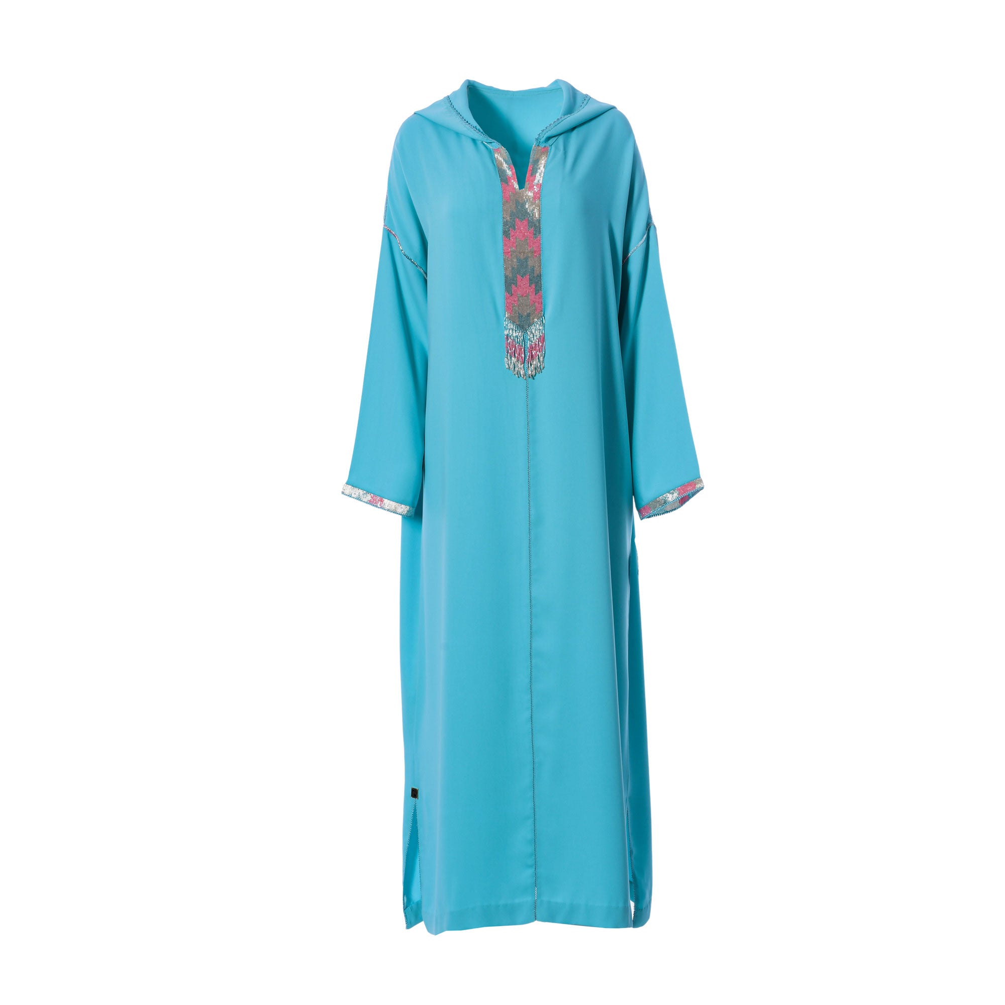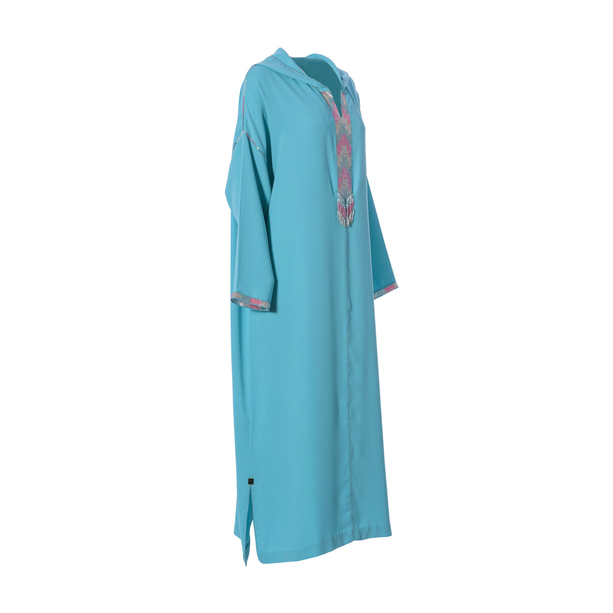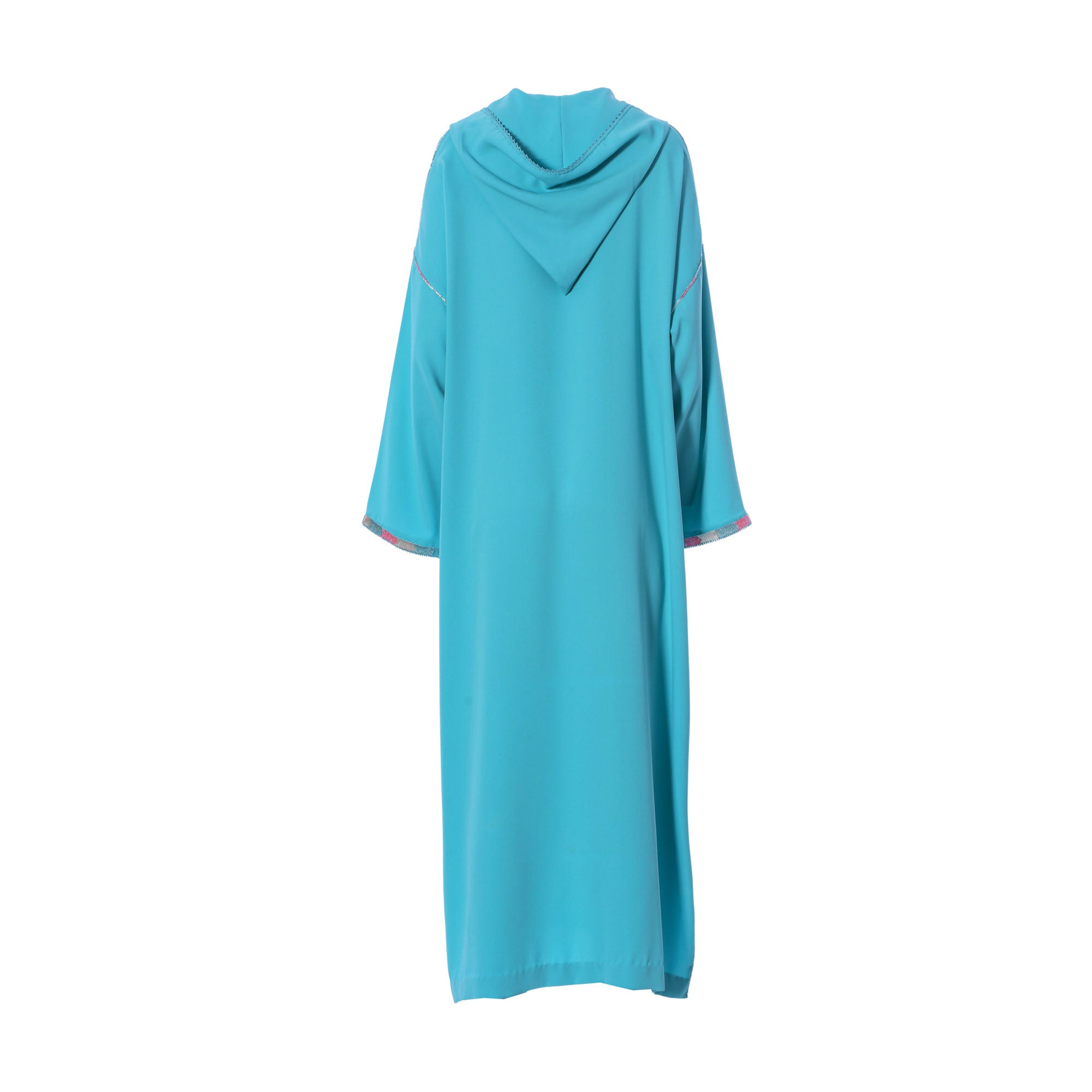The Laylati Women's light blue Jalabiya is a beautiful and stylish addition to your wardrobe. This classic garment is made from a premium quality fabric and features a loose, long-sleeved design. This Jalabiya is adorned with intricate embroidery on neck and sleeves with side slits on both sides of bottom and a long length for added coverage. The unique light blue hue will add a touch of elegance to any ensemble. This free size Jalabiya is a versatile and comfortable piece that can be dressed up or down depending on the occasion. Whether you're attending a special event or just want to look your best, the Laylati Women's light blue Jalabiya is the perfect choice. SPECIFICATIONS: