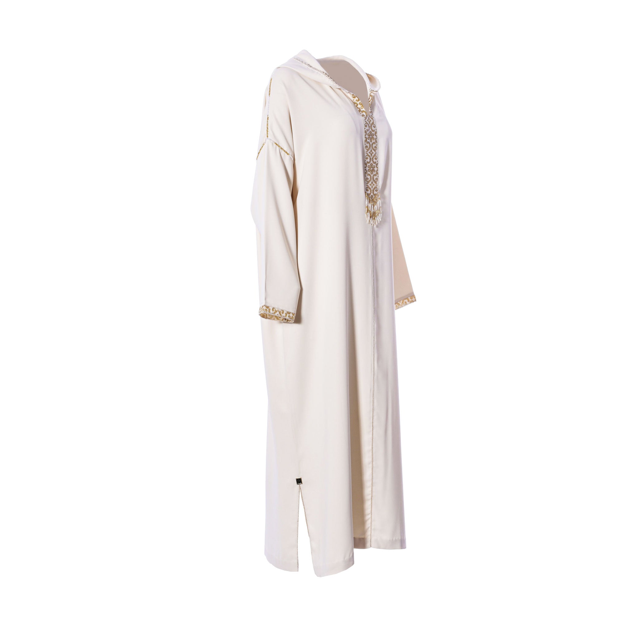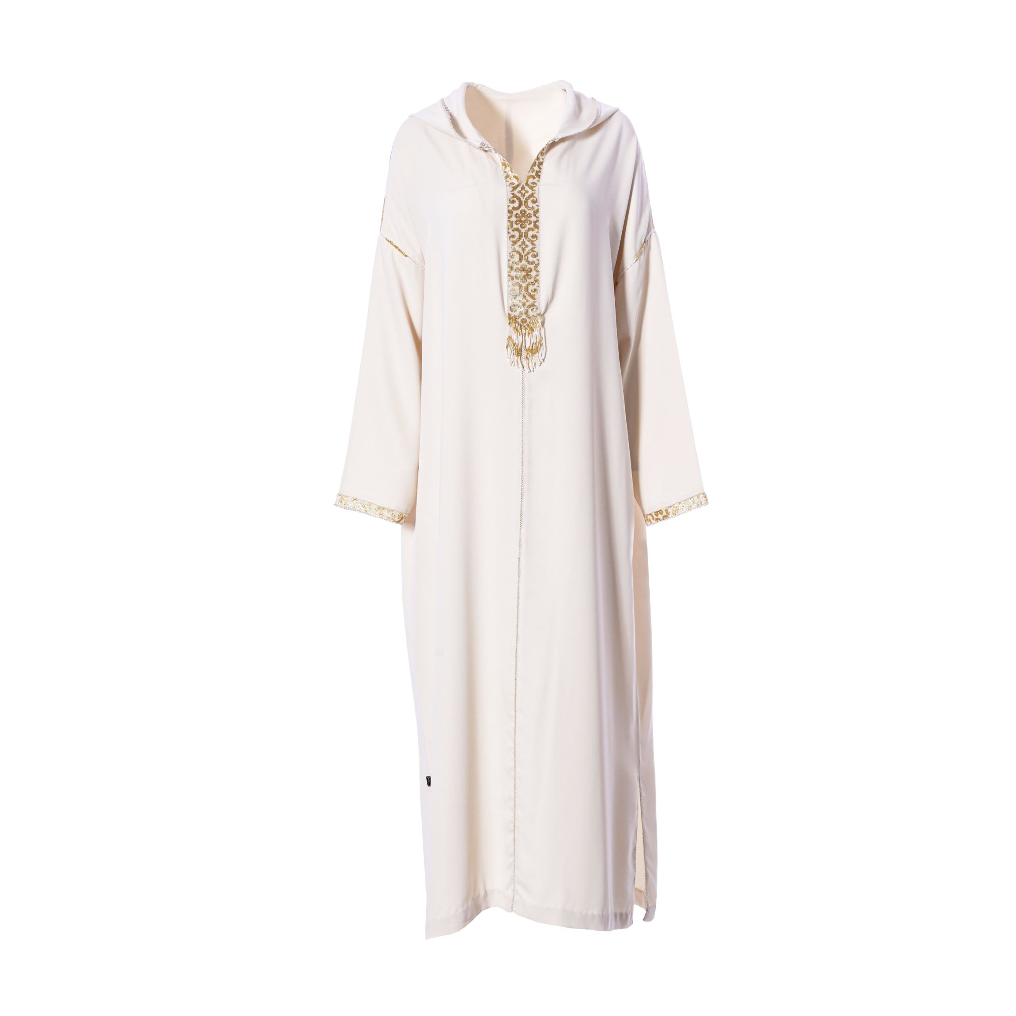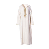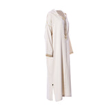 The Laylati Women's Off white Jalabiya is a beautiful and stylish addition to your wardrobe. This classic garment is made from a premium quality fabric and features a loose, long-sleeved design. This Jalabiya is adorned with intricate  embroidery on neck and sleeves with side slits on both sides of bottom and a long length for added coverage. The unique Off white hue will add a touch of elegance to any ensemble. This free size Jalabiya is a versatile and comfortable piece that can be dressed up or down depending on the occasion. Whether you're attending a special event or just want to look your best, the Laylati Women's Off white Jalabiya is the perfect choice.