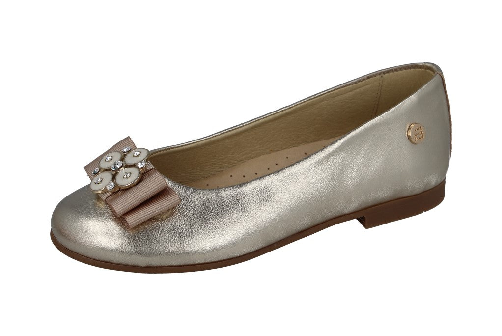 The Andanines Kids Girl's Ballerina shoes are a delightful blend of elegance and playful style, perfect for young girls looking to make a fashion statement. Crafted from high-quality leather, these ballerinas feature a stunning metallic finish that adds a touch of sophistication to any outfit. The charming bow detailing at the front enhances the feminine aesthetic, while the faux-pearl and crystal embellishments provide a lovely sparkle, elevating their charm. The gold-tone logo plaque adds a luxurious touch, signaling the quality associated with the Andanines brand. Designed with a comfortable round toe, these ballerinas ensure ease of movement, making them suitable for everything from playdates to special occasions. The slip-on style allows for quick and easy wear, helping young girls put them on effortlessly. Inside, the branded leather insole offers cushioned comfort for all-day use, while the rubber outsole provides traction and stability, ensuring safety during active play. The Andanines Kids Girl's Ballerina shoes are a stylish and practical addition to any young girl’s wardrobe, combining elegance with comfort seamlessly.
