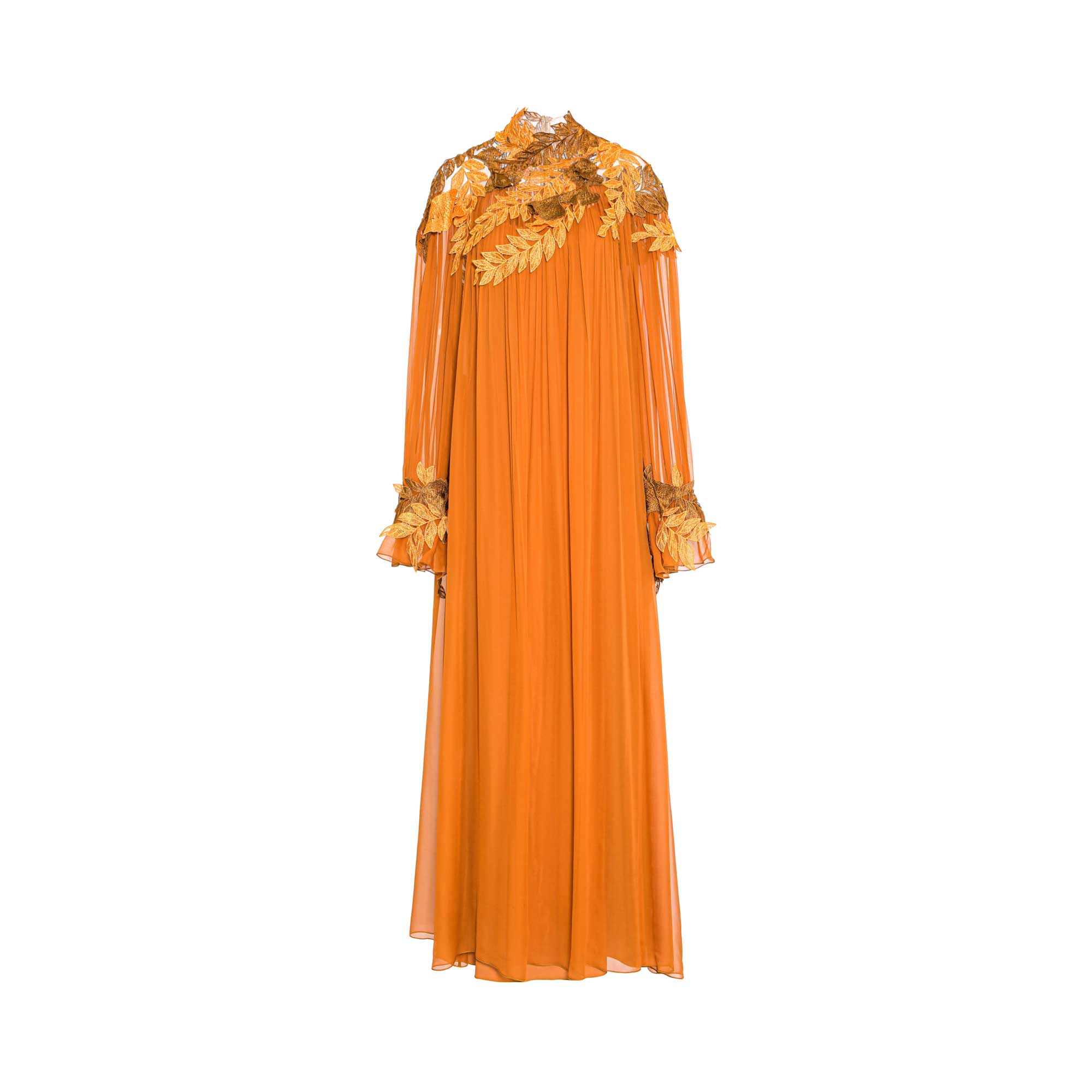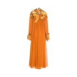 Alberta Ferretti’s Women's Orange Dress is a stylishly chic look perfect for a formal event. Crafted in a striking pumpkin orange hue, the dress features a semi-sheer floral appliqué overlay for a romantic effect. The shift style is complete with a high neckline, long sleeves, and a rear zip fastening for a perfect fit. The straight hemline falls to an ankle-length for a graceful finish. Styled with strappy heels and a bold makeup look, this dress is sure to be the perfect addition to any special occasion. SPECIFICATIONS