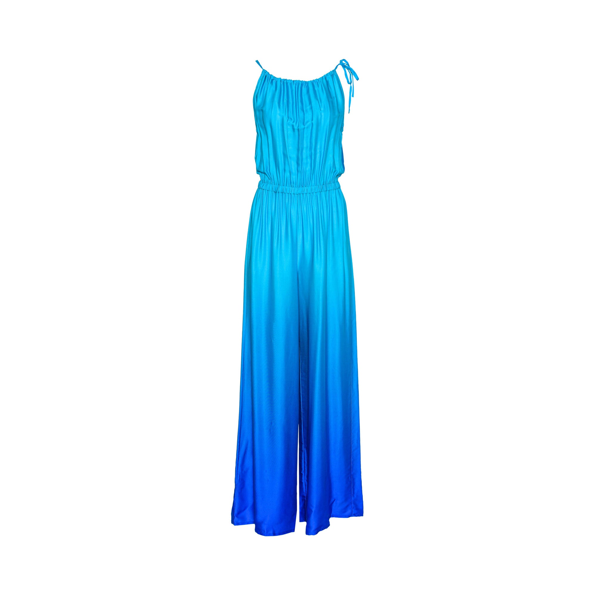 The Sfizio Women's Jumpsuit in Blue Ray is a stunningly modern option that brings a touch of glamour to any occasion. This jumpsuit is crafted from eco-friendly viscose and has an eye-catching ombré gradient of light blue and blue. The standout features of this piece are its halter neckline with gathering on the neckline, wide leg trousers and an elasticated waistband that provides a flattering shape. This piece is perfect for any special occasion, from a cocktail party to a dinner date or a beach getaway. The Sfizio jumpsuit is light and airy, making it comfortable and breezy in the summer heat. The vibrant color palette is sure to draw attention and make you stand out from the crowd for all the right reasons. With the intricate gathering details, this jumpsuit is sure to turn heads and be the envy of your friends. The Sfizio Women's Jumpsuit in Blue Ray is a unique and modern option for any evening or special event. Not only does it look elegant and stylish, it is also made of eco-friendly materials and is sure to show off your elegant sense of style. SPECIFICATIONS