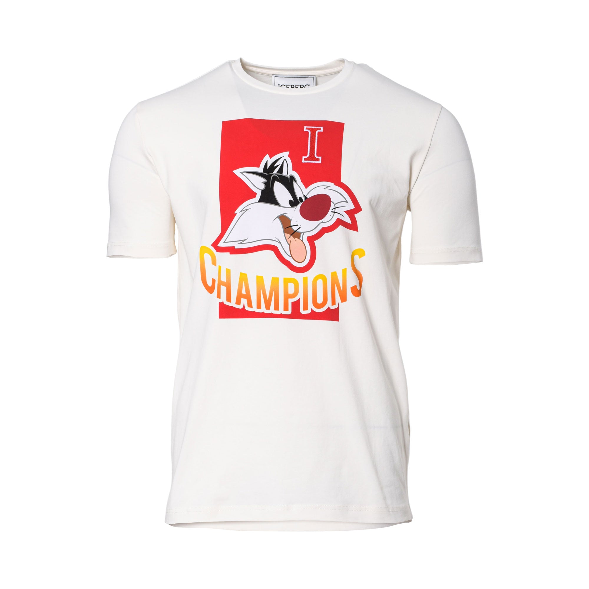 - Iceberg Men's Off-white T-shirt with Cartoon Print.