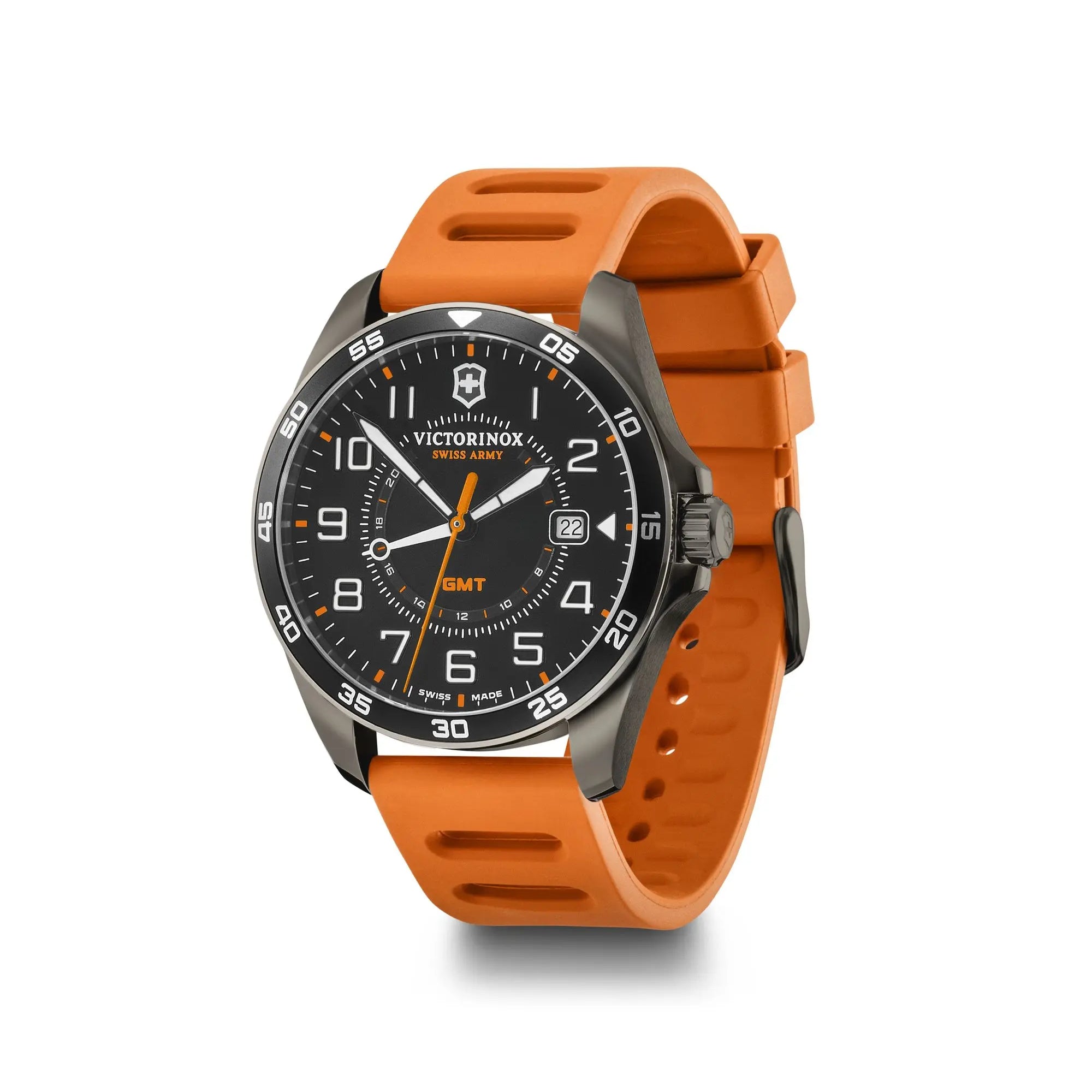 Victorinox Fieldforce Gmt 42 Gun Metal Black Dial Orange Rubber Men's Watch