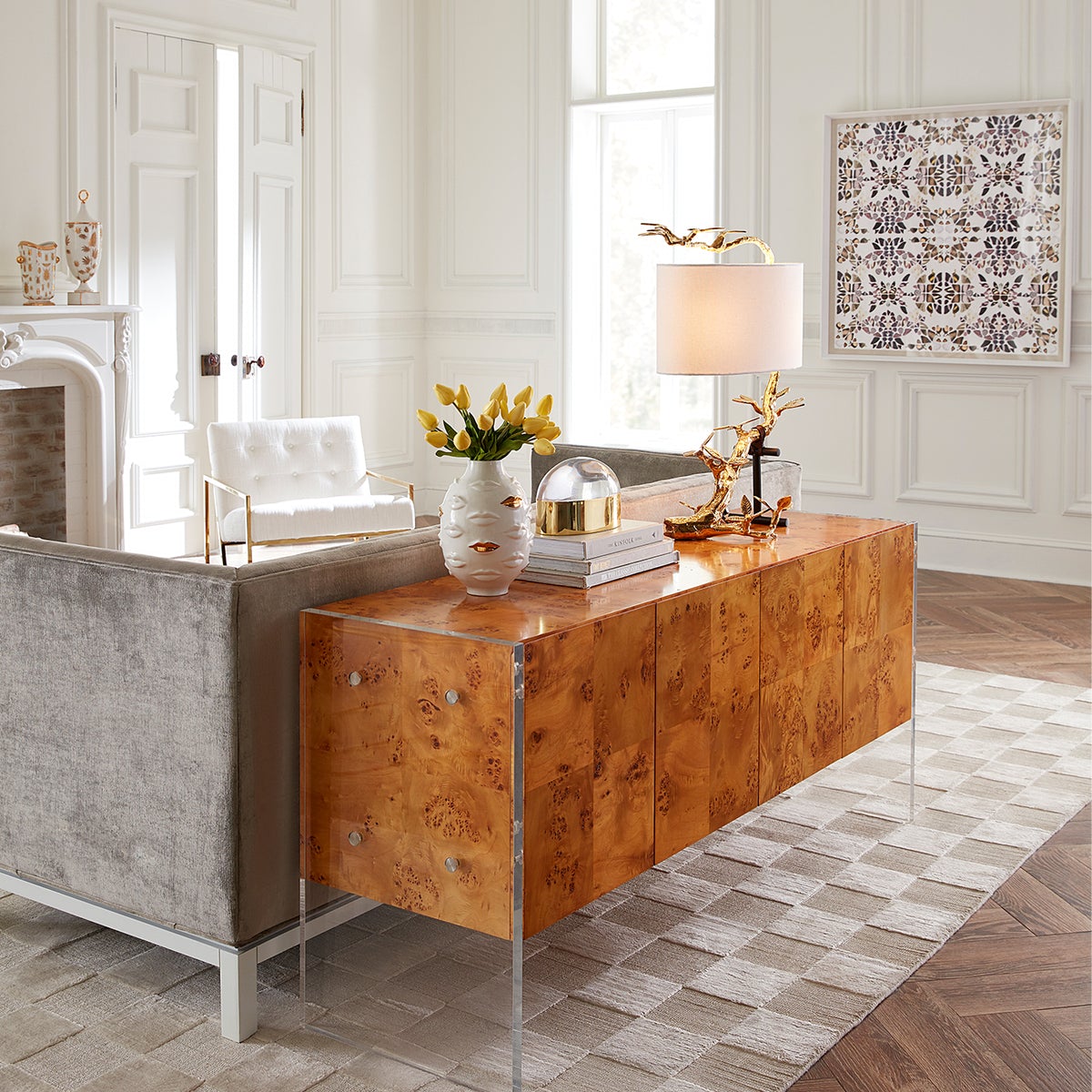 Wrapped in an expressive collection of moody mouths, our Gilded Gala Round Vase is a kiss of cool for your table, mantel, or shelf. Inspired by Gala, wife and muse of Salvador Dali.