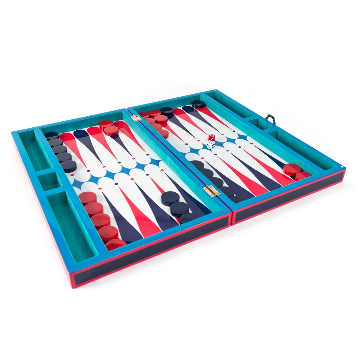 Jonathan Adler Lacquer Backgammon Set - Resource - Red/Navy/Turq