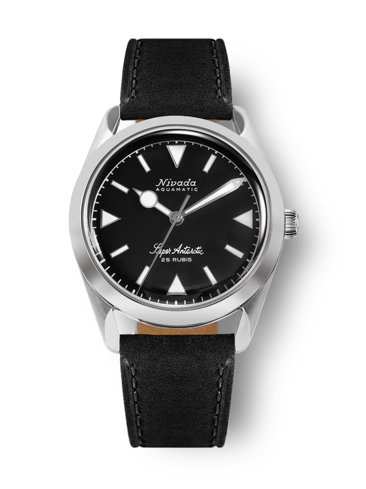 This Antarctic reissue also started on Instagram, following a post of one of our great followers who had the great idea to share his vintage timepiece with us. We shared it in the stories and got so many messages that we knew it was our mission to make it again with the same original spirit and guts. But with modern standards (Sapphire Glass) and Swiss automatic movement (Soprod P024) with screw-down crown offering a 10 ATM water resistance.The Spider nickname is coming from this crazy sector dial with silver Sunray finish and cream Swiss Super luminova that looks like a spider’s web. Diameter is contained to 38mm and lugs to lugs to 45 mm with a great thickness of 11,1 mm. You will off course notice the date magnifier.