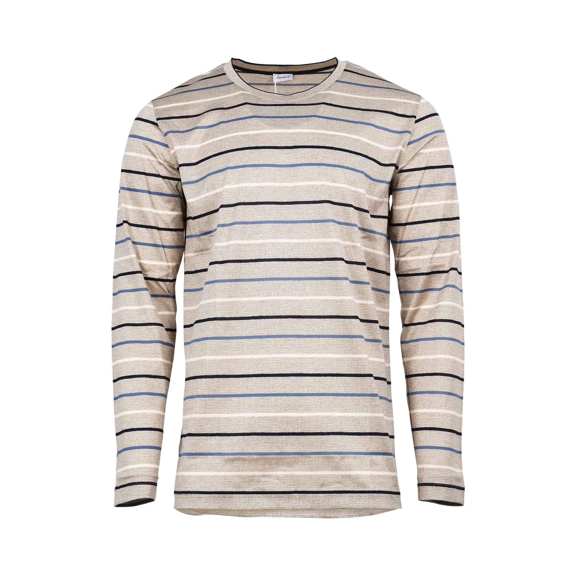 | The Zimmerli Men's Cotton and Silk Long Pyjama Set is a luxurious and comfortable sleepwear option for men. This pyjama set features a crew neck and long sleeves, providing full coverage and warmth during colder nights. It is part of Zimmerli's Silk/Cotton Stripes X Sea Island series, which combines the softness and breathability of silk and cotton with the luxurious and rare Sea Island cotton.The pajama bottoms are made from the finest Sea Island cotton, known for its long fibers and superior quality. They have a button closure and concealed elastic waistband, ensuring a comfortable and secure fit. The top of the pyjama set is adorned with a striped jacquard pattern, adding a touch of style to the overall design. One of the standout features of the Zimmerli Men's Cotton and Silk Long Pyjama Set is the use of double mercerized material. As a result, the pyjama set has a luxurious sheen and feel, making it a premium addition to any sleepwear collection. Apart from its elegant design, the Zimmerli pyjama set also offers maximum comfort. The Zimmerli Men's Cotton and Silk Long Pyjama Set is a perfect blend of style, comfort, and luxury. SPECIFICATIONS • Brand: Zimmerli • Gender: Men • Made from a blend of silk and cotton • Crew neck and long sleeves for full coverage • Part of Zimmerli's Silk/Cotton Stripes X Sea Island series • Finest Sea Island cotton used for pajama bottoms • Button closure and concealed elastic waistband for comfortable fit • Striped jacquard pattern on top adds style • Double mercerized material for luxurious sheen and feel • Offers both style and comfort • Perfect for colder nights • Premium addition to sleepwear collection • Washing Instructions: 30°C mild fine wash • Do not bleach • Do not tumble dry • Do not Dry clean |