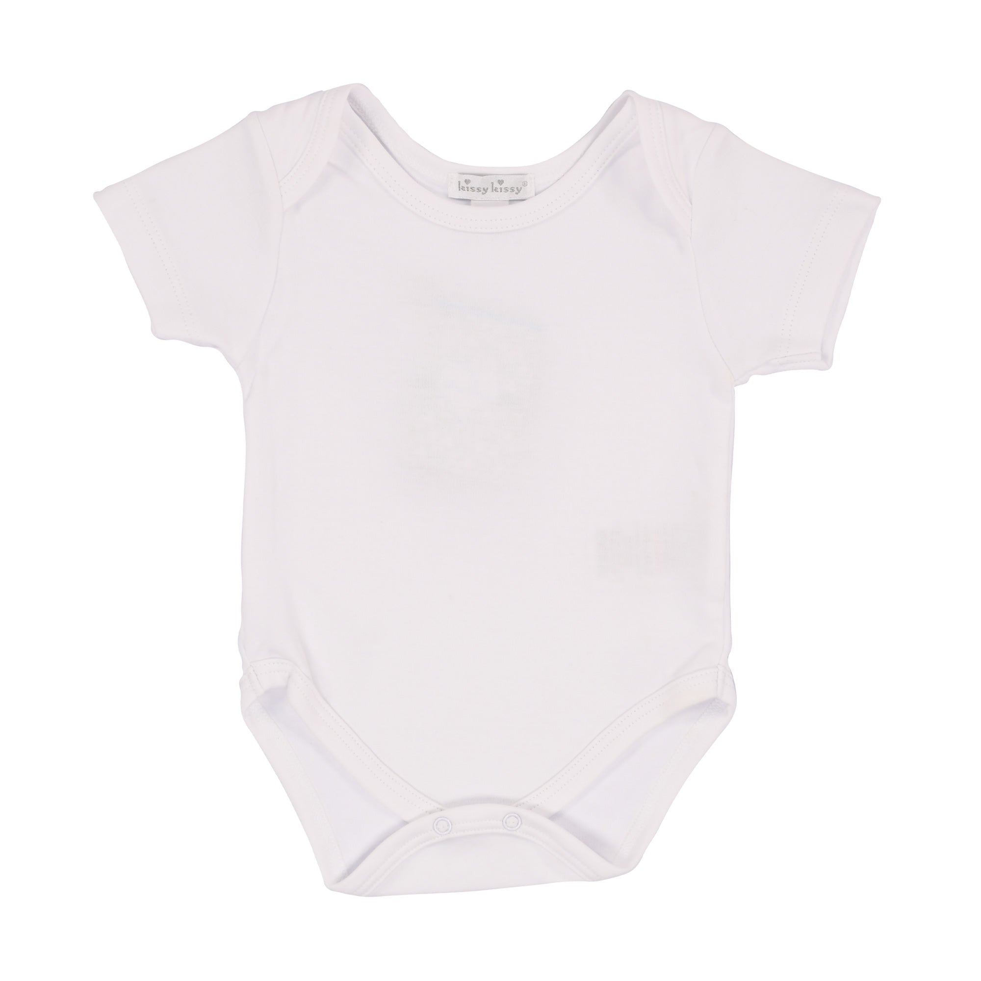 This classic white bodysuit by Kissy Kissy is perfect for newborns. It's easy to put on and take off, thanks to the popper fastening on the bottom of the bodysuit.The fabric used is of the highest quality, ensuring a comfortable feel against your baby's skin. It has a round neck and short sleeves, both of which are designed to keep your baby warm and cozy.It can be matched with other items in the Kissy Kissy baby collection or used as a simple but elegant addition to any outfit.This bodysuit is sure to be a timeless wardrobe staple for all newborn babies. SPECIFICATIONS