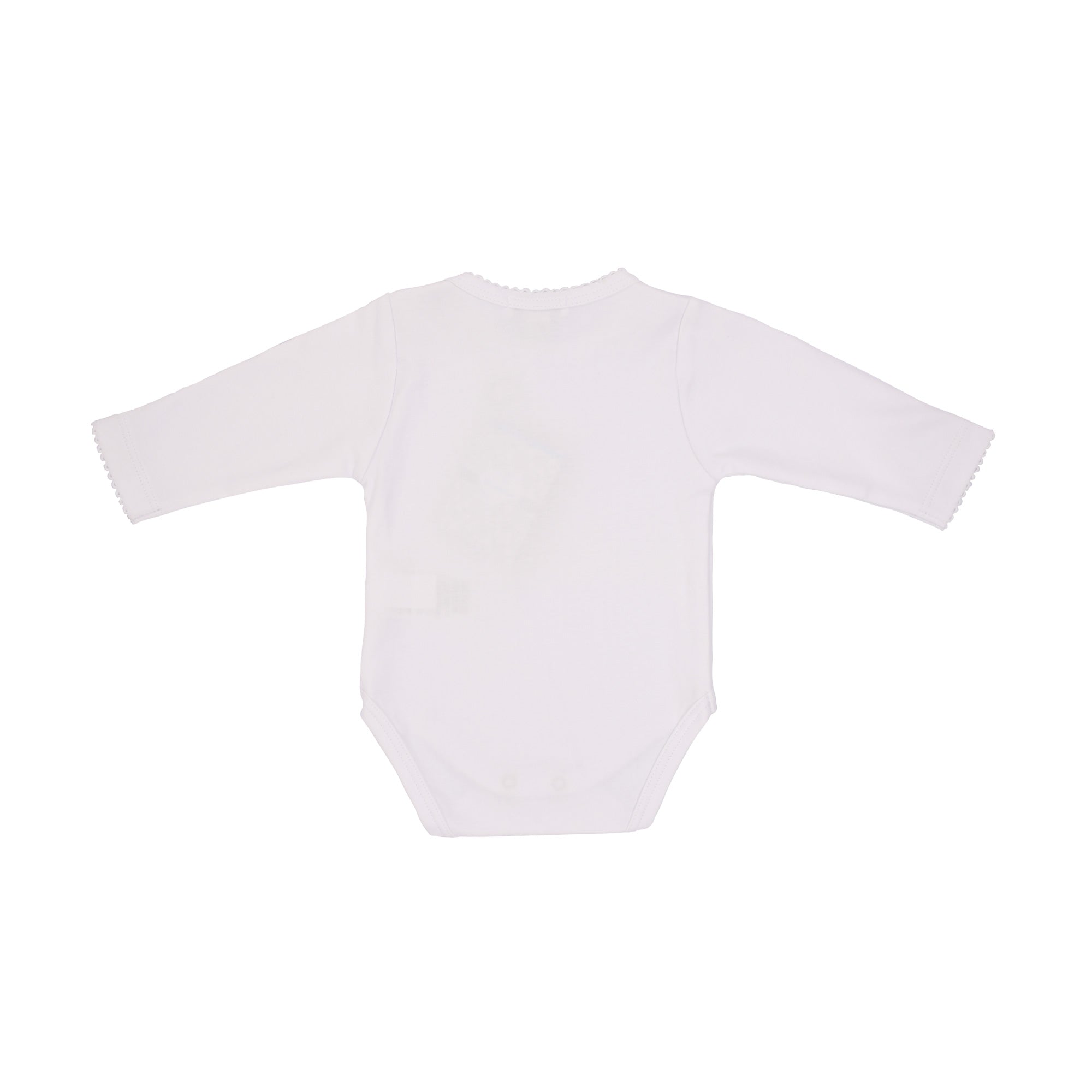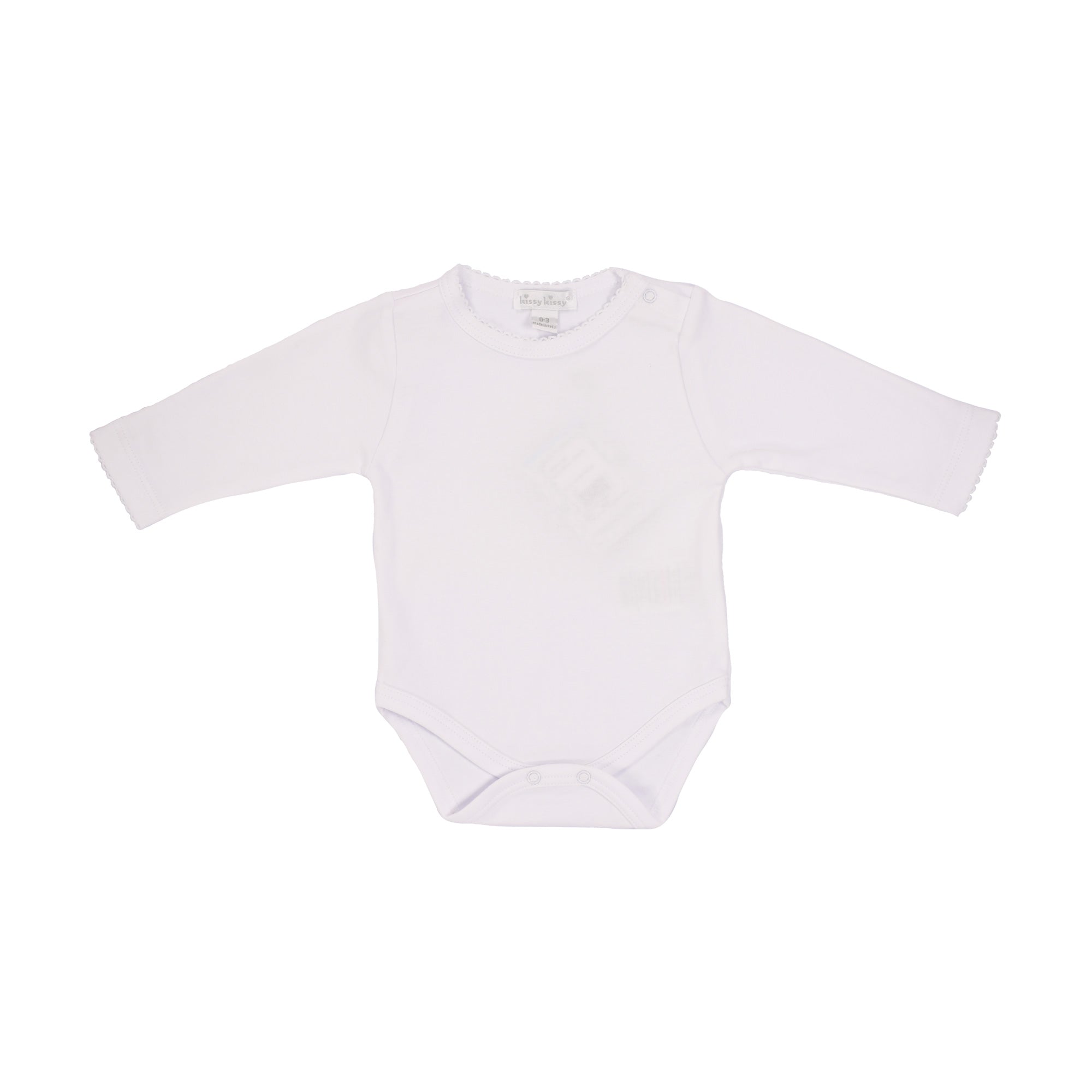 This classic white bodysuit by Kissy Kissy is perfect for newborns. It's easy to put on and take off, thanks to the popper fastening on the side of one shoulder and the bottom of the bodysuit.The fabric used is of the highest quality, ensuring a comfortable feel against your baby's skin. It has a round neck and full sleeves, both of which are designed to keep your baby warm and cozy.It can be matched with other items in the Kissy Kissy baby collection or used as a simple but elegant addition to any outfit.This bodysuit is sure to be a timeless wardrobe staple for all newborn babies. SPECIFICATIONS