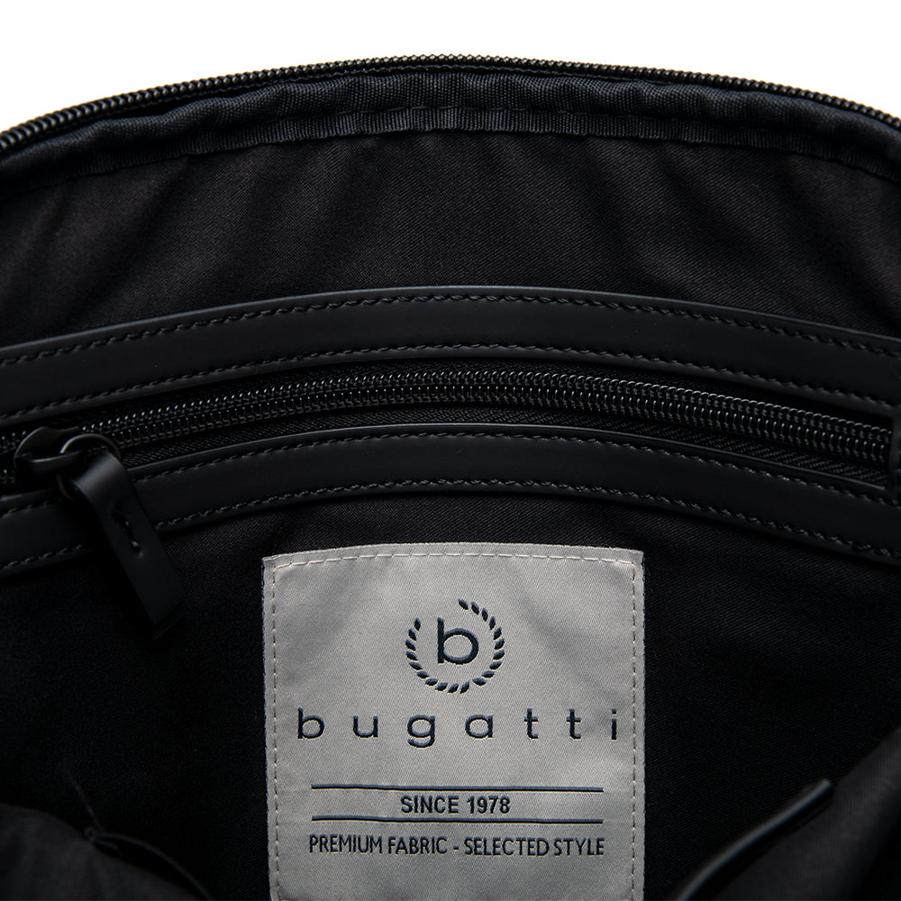 This bag captivates with its high-quality two-tone nylon and elegant embossed bugatti logo.