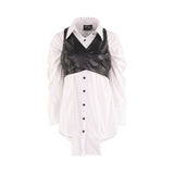 | The Mused Boutique Women's White & Black shirt features a unique design that combines elements of a traditional white shirt with a contemporary crop top. The shirt has a classic white color with a collared neck and long sleeves, giving it a sophisticated look. It also has a front button fastening for easy wear. The distinctive feature of this shirt is the upper black crop top, made from faux leather material. This adds an edgy and modern touch to the overall design. The crop top also has a V-neckline, adding a touch of femininity to the shirt. Whether dressed up with a pair of black high-waisted pants or down with a pair of denim shorts, this White & Black shirt from Mused Boutique is a versatile piece that can be worn for various occasions. Its combination of classic and trendy elements make it a must-have in any fashion-forward woman's wardrobe. SPECIFICATIONS • Brand: Mused Boutique • Gender: Women • Unique design that combines classic white shirt with modern crop top • Classic white color with collared neck and long sleeves • Front button fastening for easy wear • Distinctive upper black crop top made from faux leather • Edgy and modern touch to the overall design • V-neckline adds femininity to the shirt • Versatile piece that can be dressed up or down for different occasions • Perfect for pairing with black high-waisted pants or denim shorts • A must-have in any fashion-forward woman's wardrobe • A statement piece that stands out in any outfit • Washing Instructions: Dry clean only • Do not bleach • Do not tumble dry |