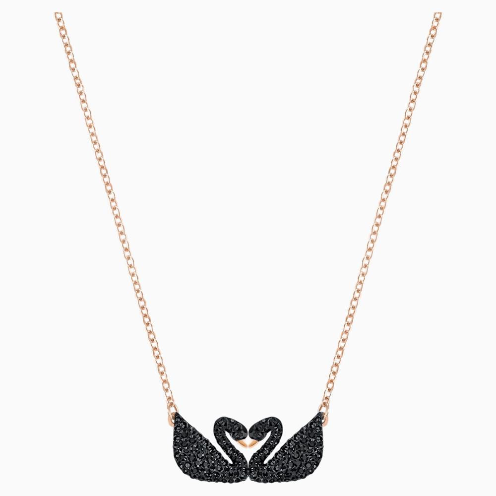 Swarovski Iconic Swan Necklace Black Rose-Gold Tone One Size