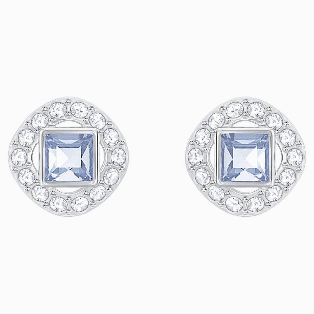 Swarovski Angelic Square Pierced Earrings Blue, Rhodium Plated