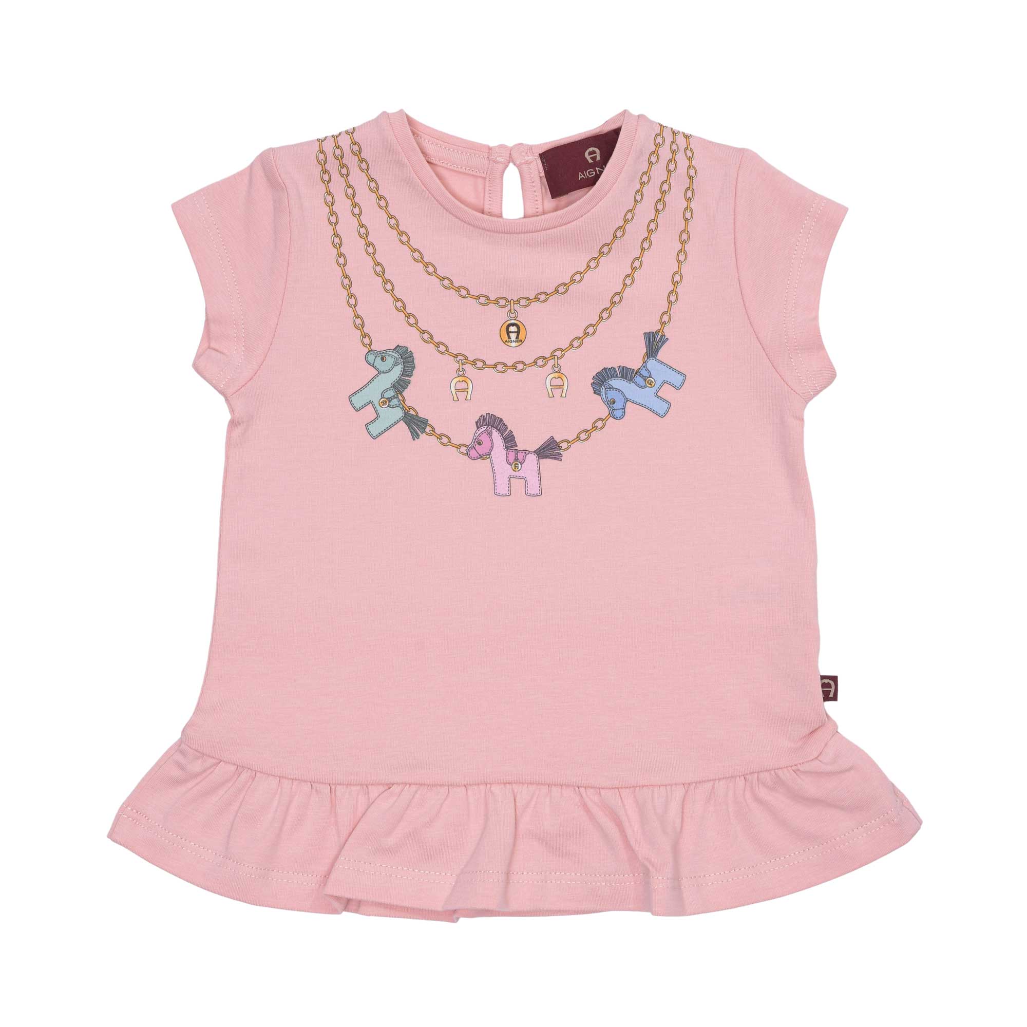 | The Aigner Kids Baby Girl's Pink T-Shirt is a cute and stylish addition to any little girl's wardrobe. This t-shirt features a round neck and short sleeves, making it perfect for warmer weather. The ruffle hem adds a sweet touch to the design, making it stand out from a basic t-shirt. The gold chain design with the brand logo adds a touch of luxury to this everyday apparel. Made from comfortable and breathable cotton, this t-shirt is perfect for your little one's delicate skin and will keep them cool and comfy all day long. The back button fastening makes it easy to put on and take off, making dressing time a breeze. Designed by the luxury fashion brand Aigner, this t-shirt is both stylish and of high quality. It is a versatile piece that can be dressed up with a skirt or dressed down with a pair of jeans for a casual look. It is sure to make your little princess look and feel like a fashionista. SPECIFICATIONS • Brand: Aigner • Gender: Girl • Perfect for warmer weather with its round neck and short sleeves • Cute ruffle hem for a sweet and unique design • Gold chain and logo design adds a touch of luxury • Made with comfortable and breathable cotton for delicate skin • Easy to put on and take off with a back button fastening • Designed by the luxury fashion brand Aigner • Versatile piece that can be dressed up or down • Makes your little one look and feel like a fashionista • High quality and stylish addition to any wardrobe • Washing Instructions: Machine wash (Gentle process) • Do not bleach • Do not tumble dry • Ironing maximum temperature 110°C • Do not dry clean About Brand Aigner is a luxury fashion label that was founded in Munich, Germany in 1965 by Etienne Aigner. It is known for its high-quality leather goods and accessories, including watches. Aigner watches are designed with elegance and sophistication in mind, combining traditional craftsmanship with modern design elements. The brand offers a variety of styles, from classic and timeless to contemporary and bold. Each Aigner watch is crafted with precision and attention to detail, using only the finest materials such as premium leather, stainless steel, and sapphire crystal. The brand also offers both men's and women's watches, with a range of colors and designs to choose from. |