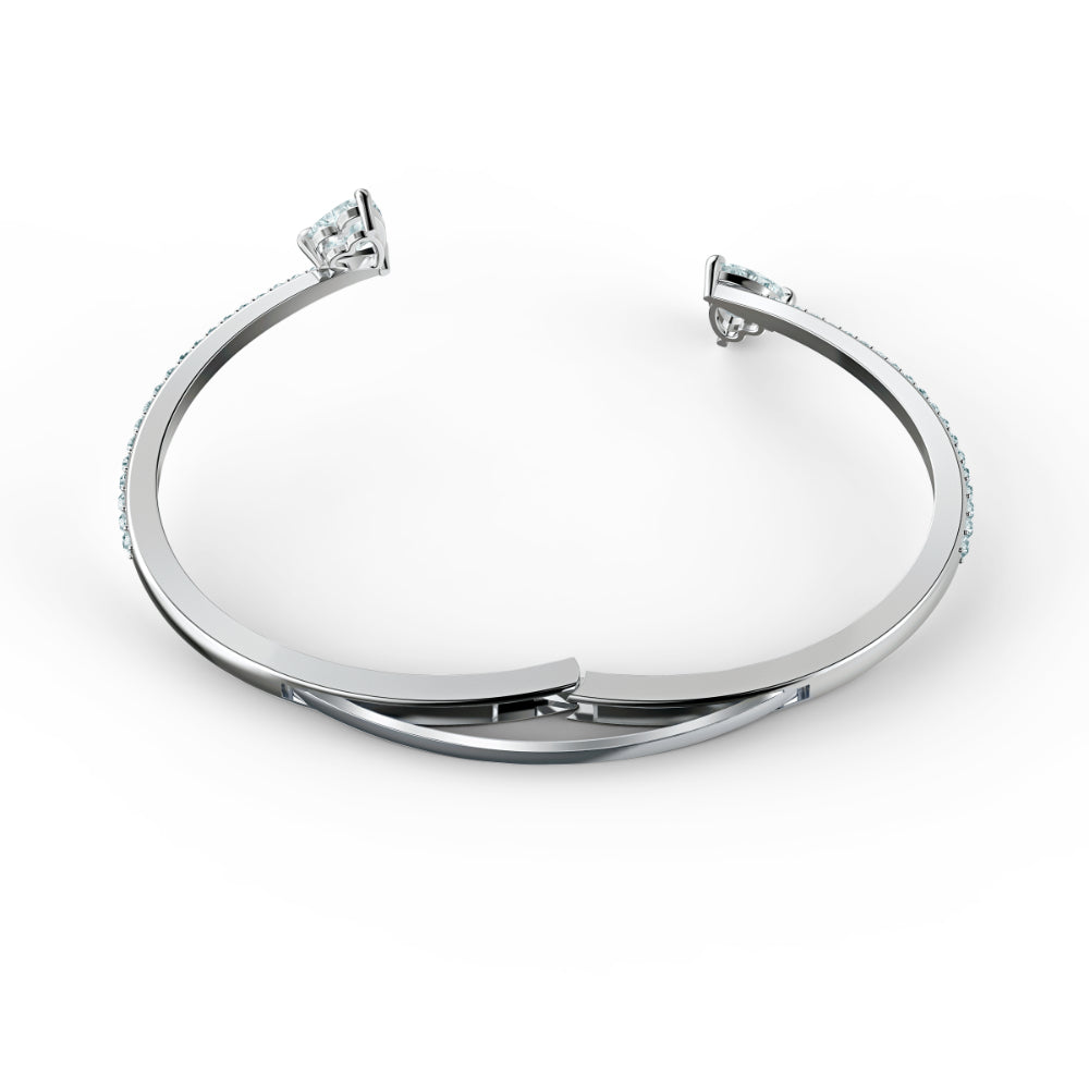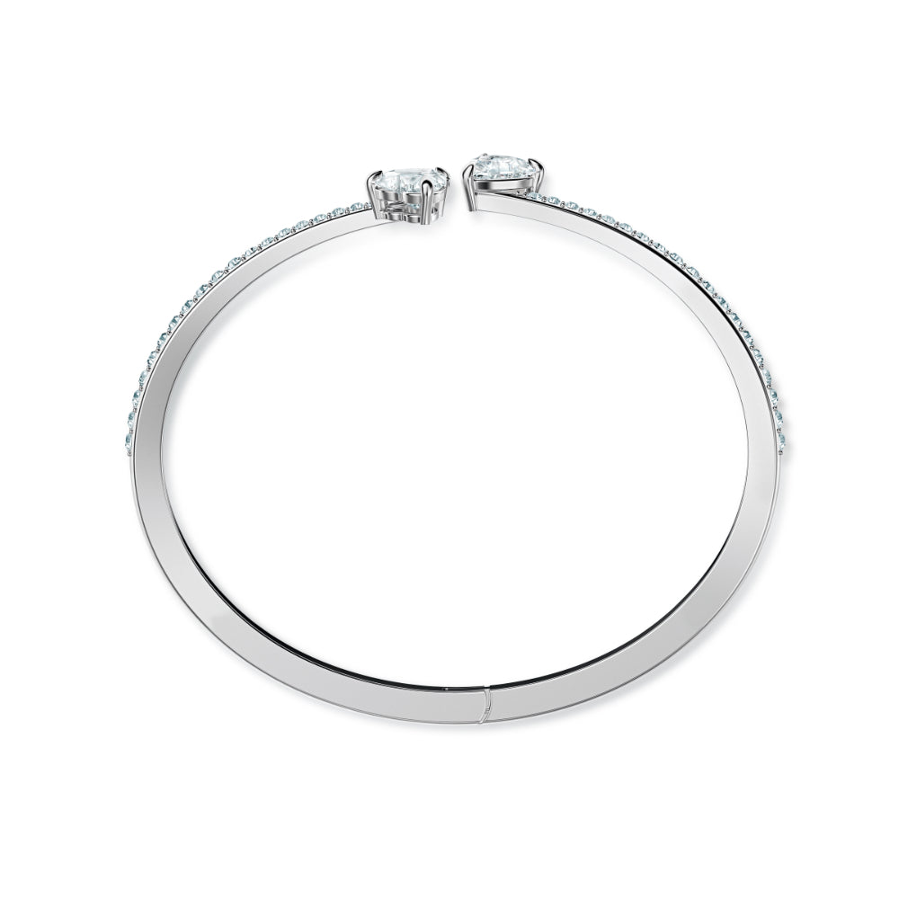 Artful simplicity and a hint of romance make this Swarovski bangle an ideal gift for a special person. The rhodium-plated design is supremely elegant and features two beautiful interconnecting heart-shaped stones as a centerpiece. A gorgeous gift to make your loved one's eyes sparkle.