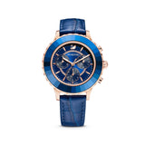 Swarovski Octea Lux Chrono Watch Leather Strap, Blue, Rose-Gold Tone Pvd