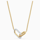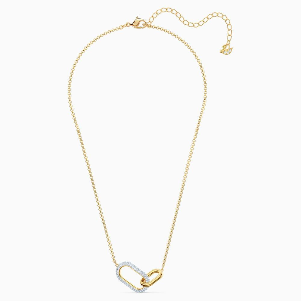A celebration of femininity and modern design, this Swarovski necklace draws inspiration from the hardware trend. Two elongated chain links holding onto each other – one shimmering softly, one covered in clear crystal pavé – take center stage. Closing with a lobster clasp, this necklace is a simple yet refined way to accentuate your everyday looks and matches well with similar pieces of jewelry.