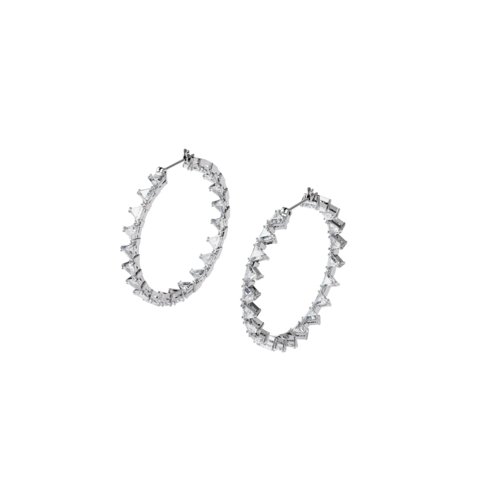 Swarovski Millenia Hoop Earrings, Triangle Swarovski Zirconia, White, Rhodium Plated