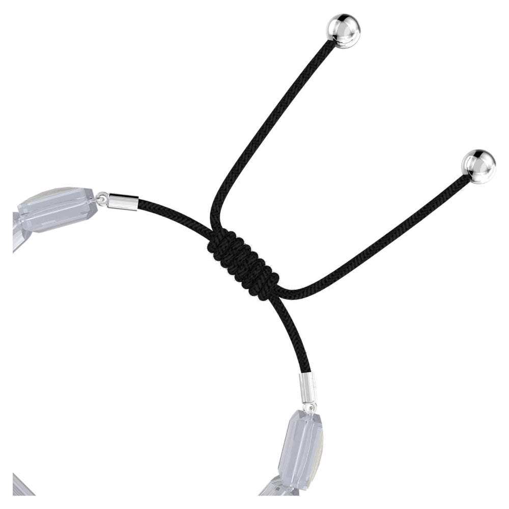 Swarovski Letra Yin Yang bracelet, White, Rhodium plated, This crystal bracelet combines traditional beading with symbolic connections. It is made of white square cut crystals and has an adjustable waxed cotton chain. It has a printed yin yang design that represents brightness, passion, and progress. This wonderful everyday bracelet will add brightness and enthusiasm to your jewellery collection. This bracelet is part of the Letra family and was designed for Collection II by Creative Director Giovanna Engelbert.