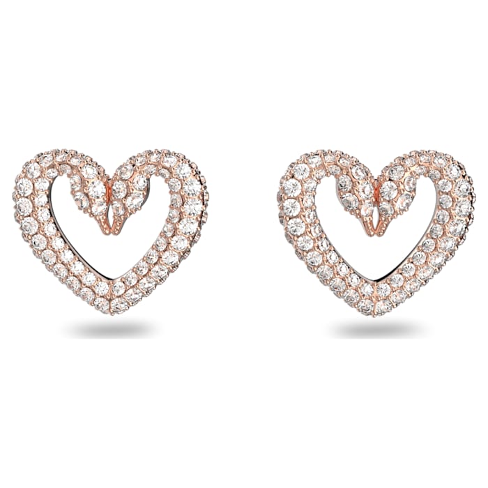 | Swarovski Una Stud Earrings Heart Small White Rose-gold tone plating, These pierced earrings, ideal for everyday wear, represent a fresh direction for the renowned Swarovski swan insignia. This rose gold-tone plated pair is shaped like a heart and is embellished with stunning pavé gems. The ideal gift for a loved one - or for yourself. These earrings are part of the Una Family, which was created for Collection III. SPECIFICATIONS
