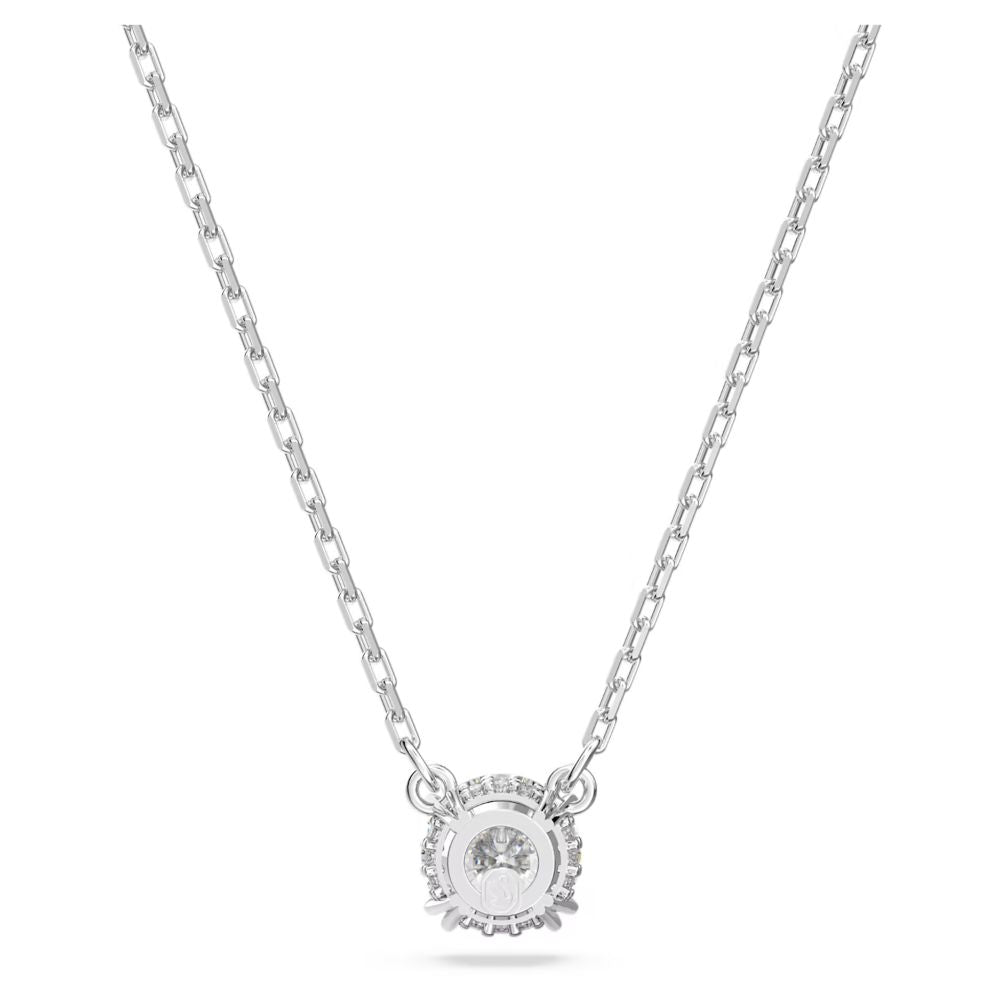 This stunning pendant from the Constella family by Swarovski is sure to turn heads. The intricate design features a dazzling pavé on the side gallery and an exquisite center stone that contrasts beautifully with the rhodium plated chain. The chain is artfully finished with three octagon-cut stones, adding a touch of elegance to the piece. Whether you're looking for a statement piece or something to add a subtle sparkle to your look, this pendant is sure to become a wardrobe favorite. With its timeless design and exquisite craftsmanship, this pendant is sure to be a treasured piece for years to come. SPECIFICATIONS: