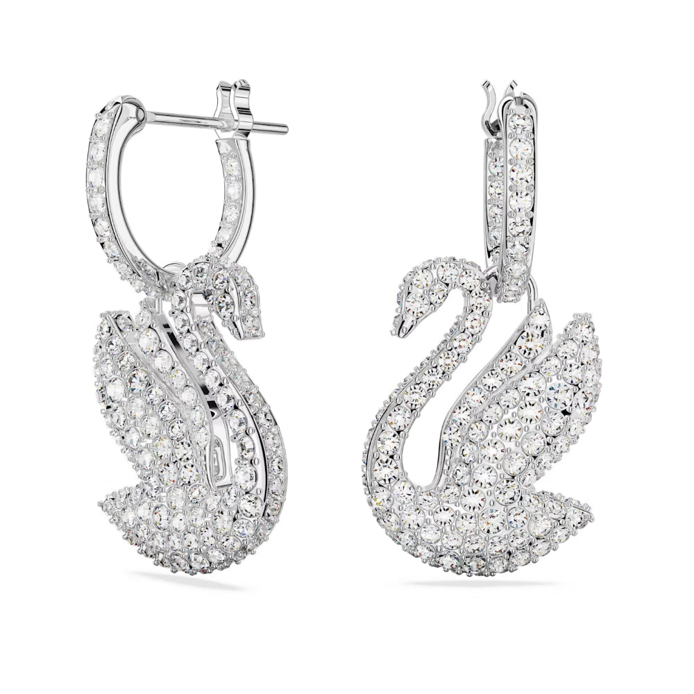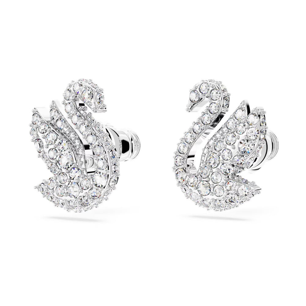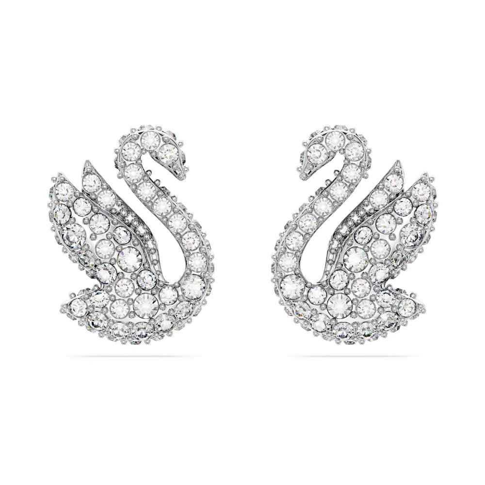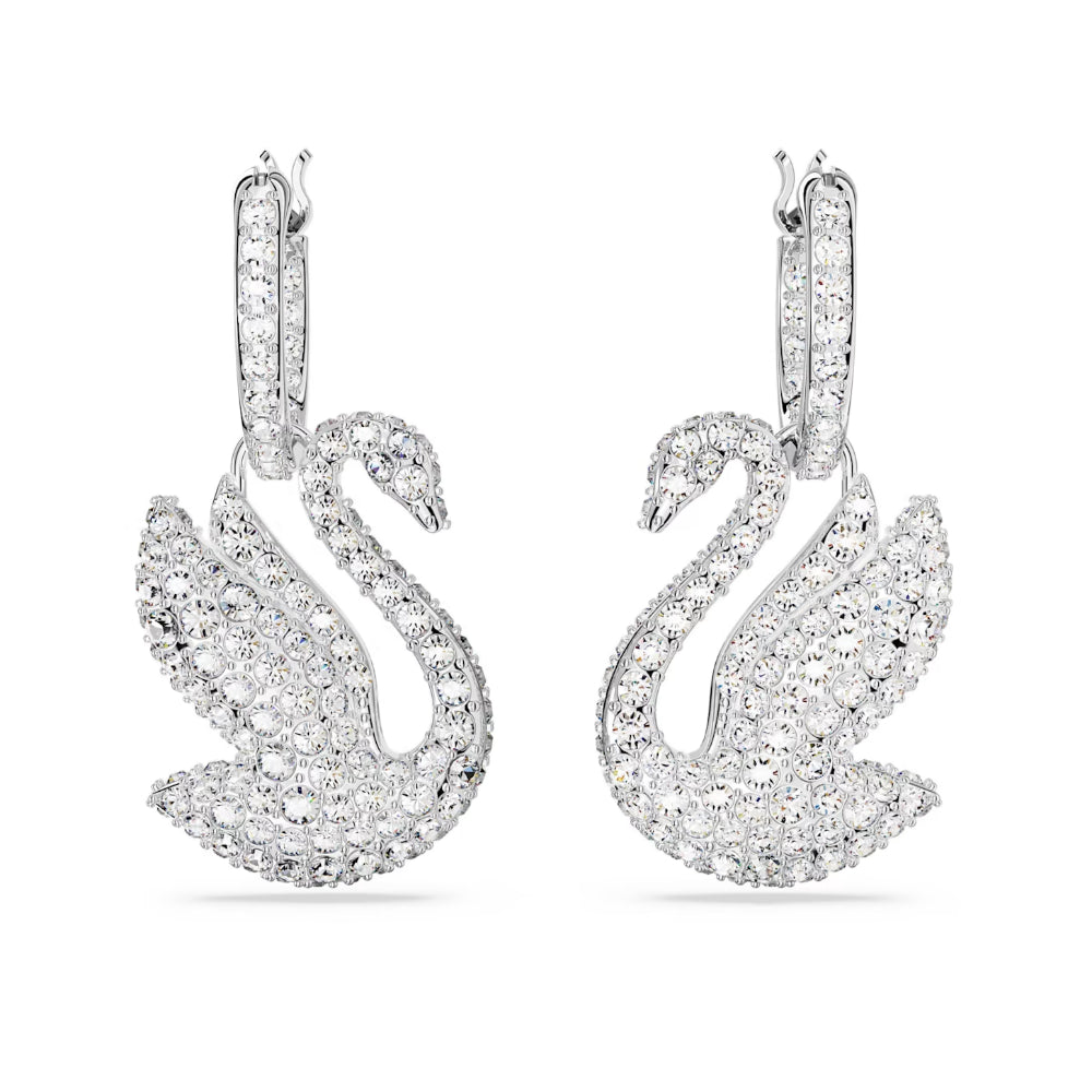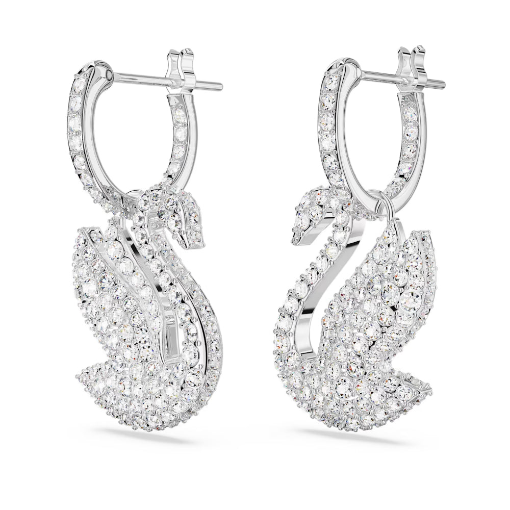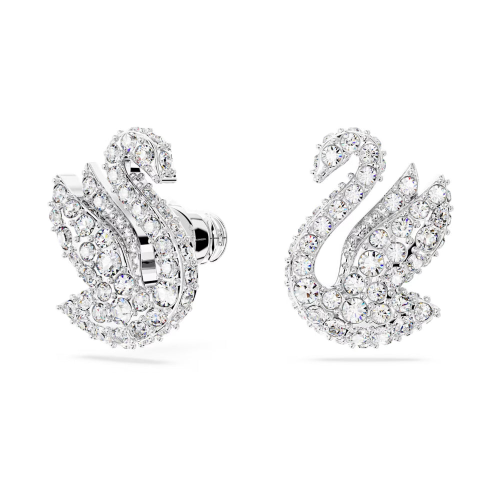 These sparkling Swarovski earrings are a dynamic interpretation of the company's signature Swan design. Each piece's glimmering outline is the result of pavé set with white crystals that have been electroplated onto rhodium. Put on the wings as a daily reminder to fly.
