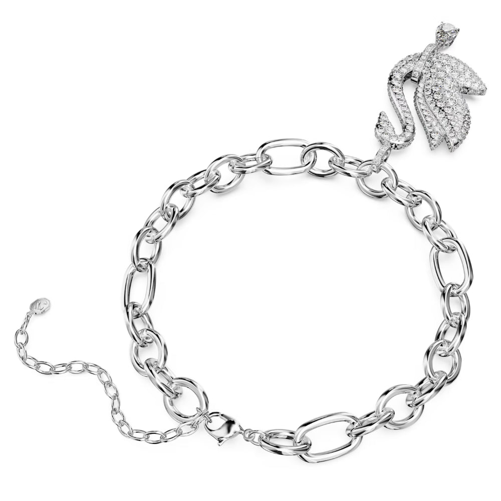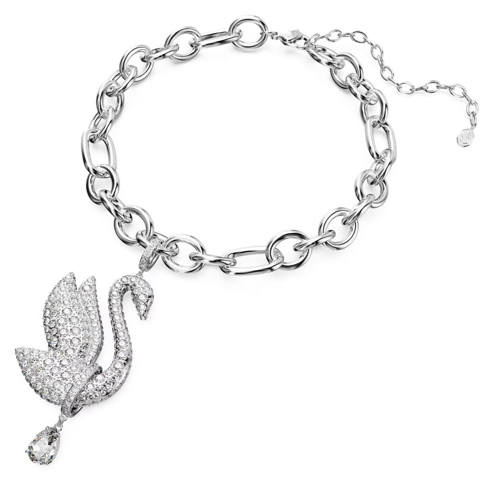 Embrace the spirit of the Swarovski Swan with this striking choker. In a bold reimagining of the iconic swan silhouette, an oversized pavé-set pendant hangs from a chunky rhodium plated chain for high-shine style. For added movement, a single precision-cut stone dangles from the swan’s elegant neck. Wear this piece and take flight. Width: 4.3 cm