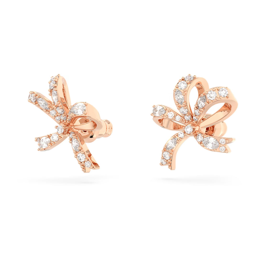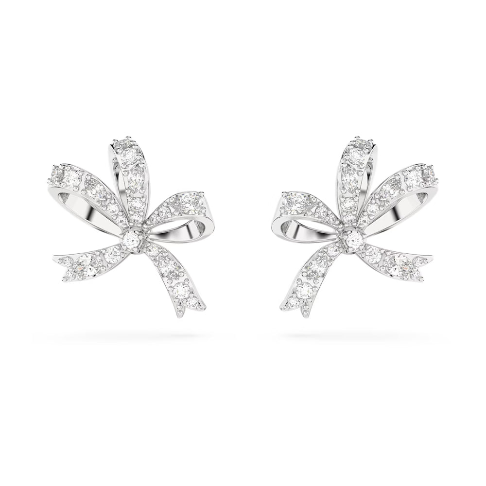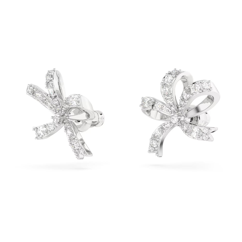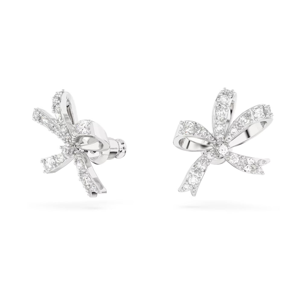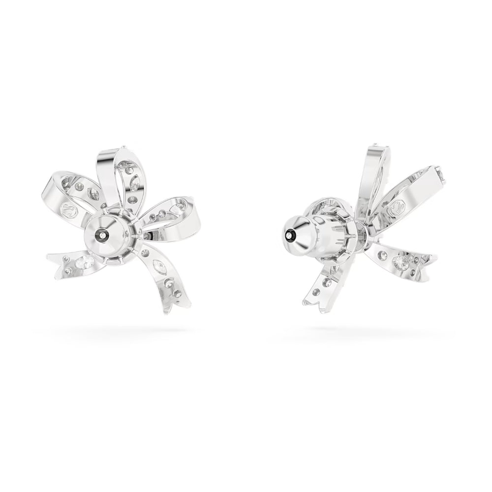 "Swarovski Volta stud earrings Bow, Small, White, Rhodium plated"