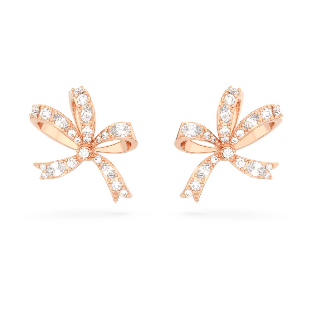 | Swarovski's bow-inspired stud earrings are the cutest way to instantly elevate any outfit. Using the chattonage method, a plethora of brilliant clear crystals are placed into place on each rhodium-plated component and strung together in a ribbon arrangement. The final touch is a transparent gemstone set in the centre. These can be matched with a necklace from the Volta collection to complement your style, making them an excellent romantic present idea. SPECIFICATIONS :