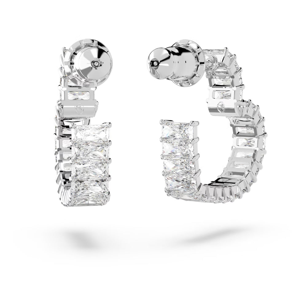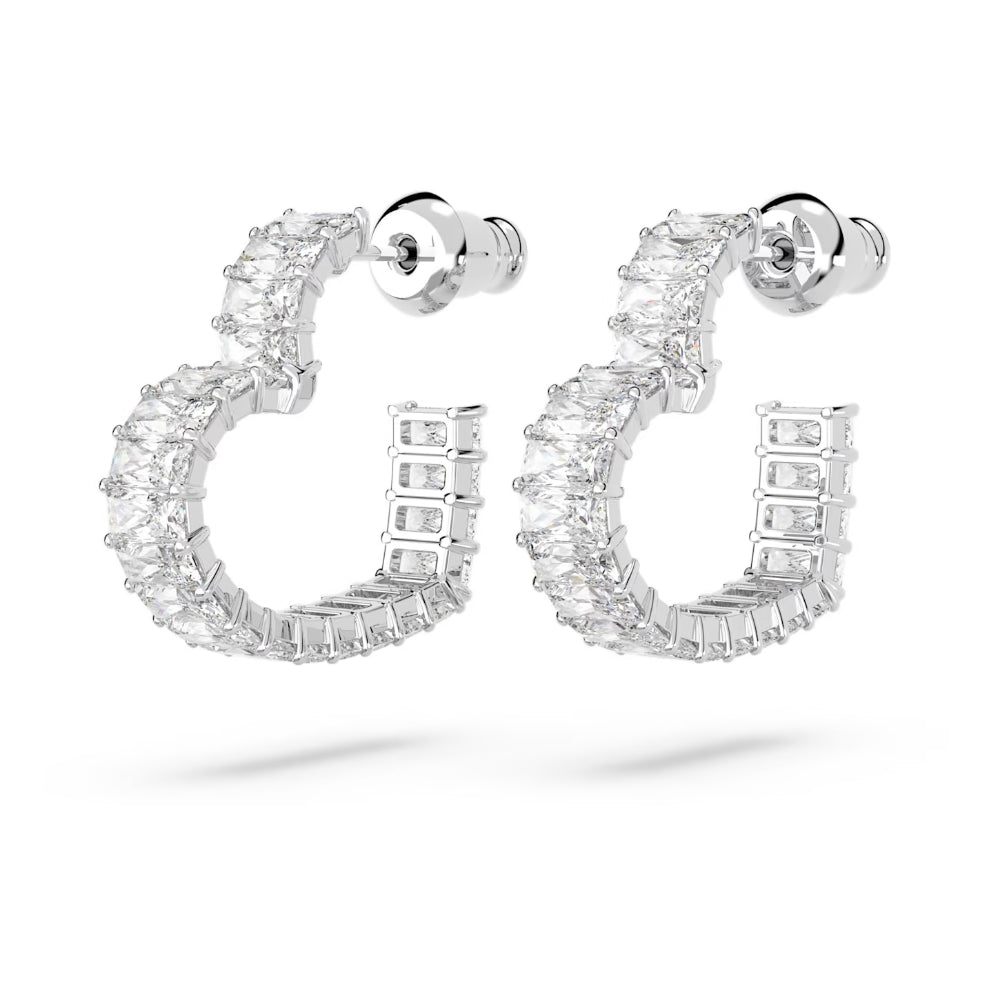"Swarovski Matrix hoop earrings Heart, Small, White, Rhodium plated"