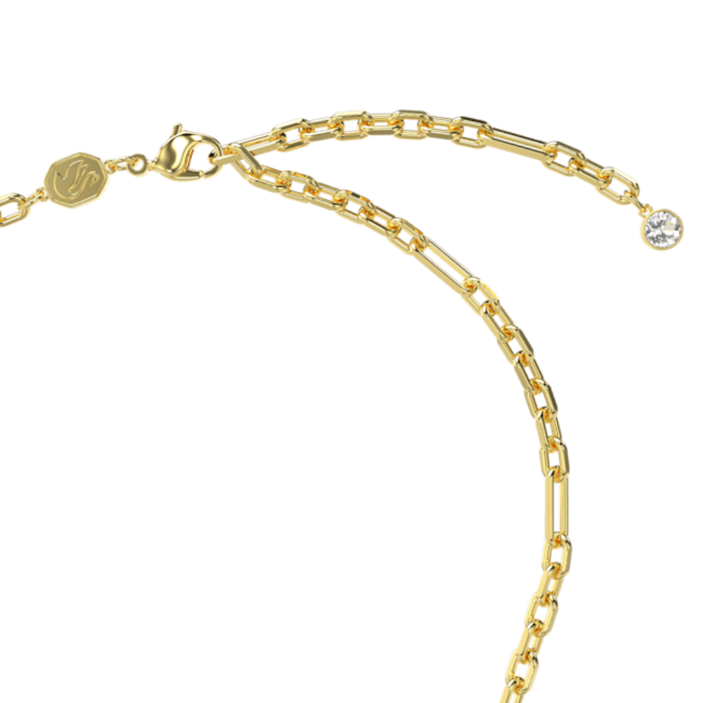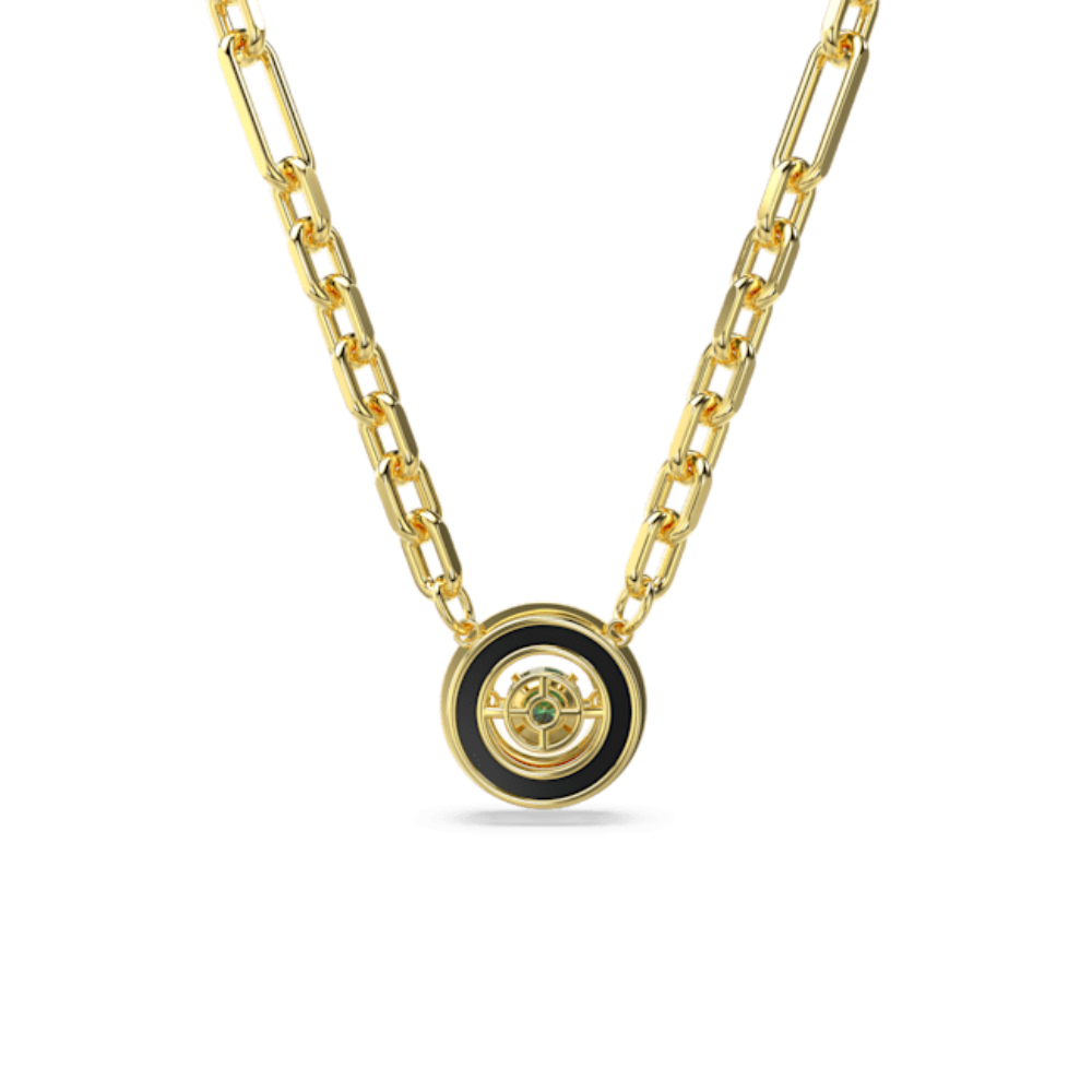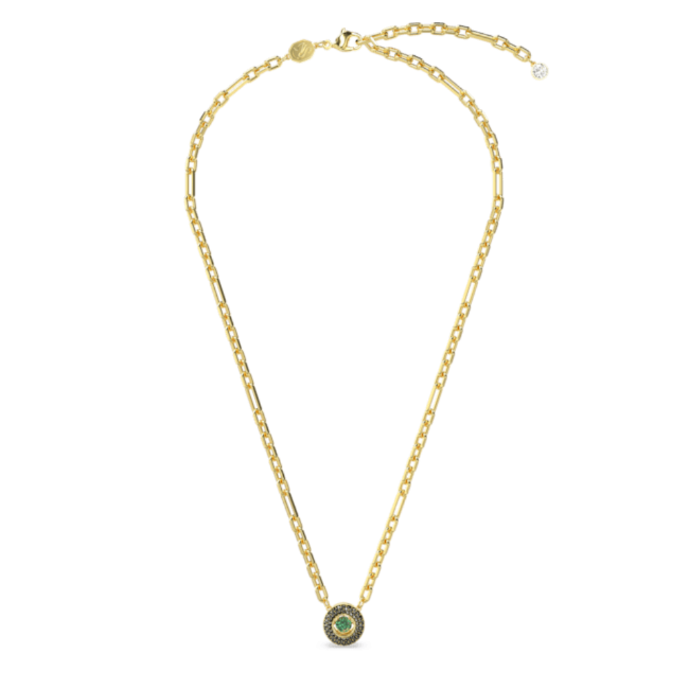 | Swarovski Sparkling Dance Necklace Green, Gold-tone plated, This intriguing pendant from the Swarovski Sparkling Dance collection combines modern street flair with a classic elegance. The modern chain is plated in gold and features a circle of black pavé and a focal dancing stone in green Swarovski Zirconia. This expertly crafted style is the ideal approach to add a distinct edge to your look. SPECIFICATIONS