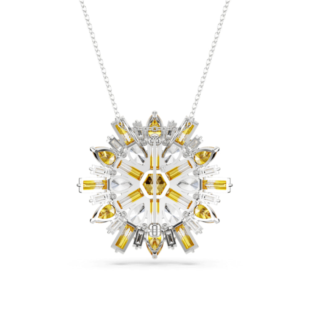 Swarovski Idyllia pendant and brooch Flower Necklace, Long, Yellow, Rhodium plated