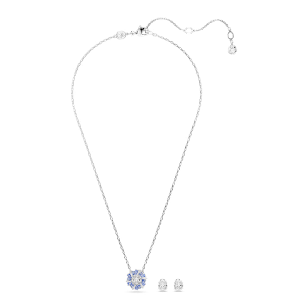 Swarovski Idyllia Set (Necklace and Earrings) Mixed cuts, Flower, Blue, Rhodium plated