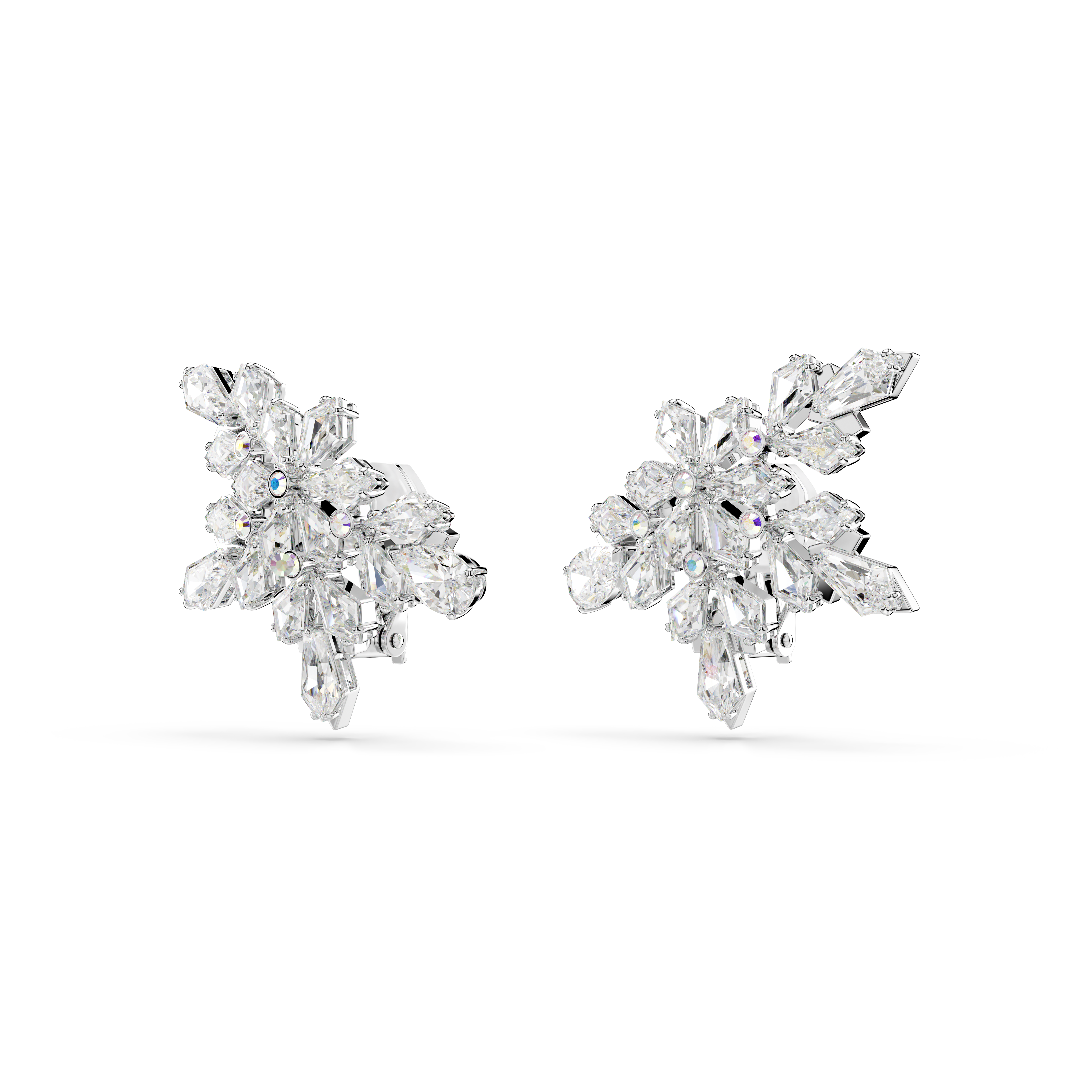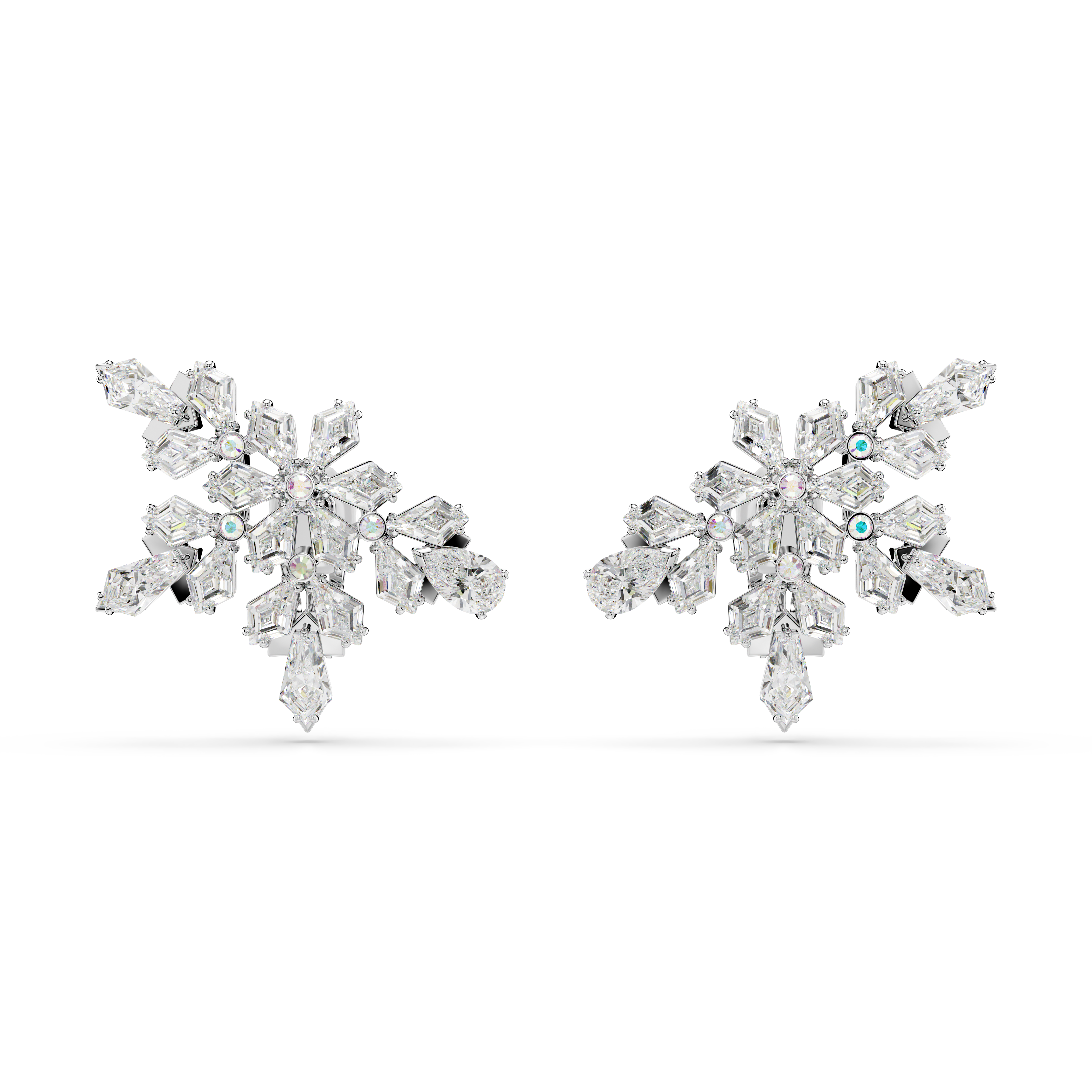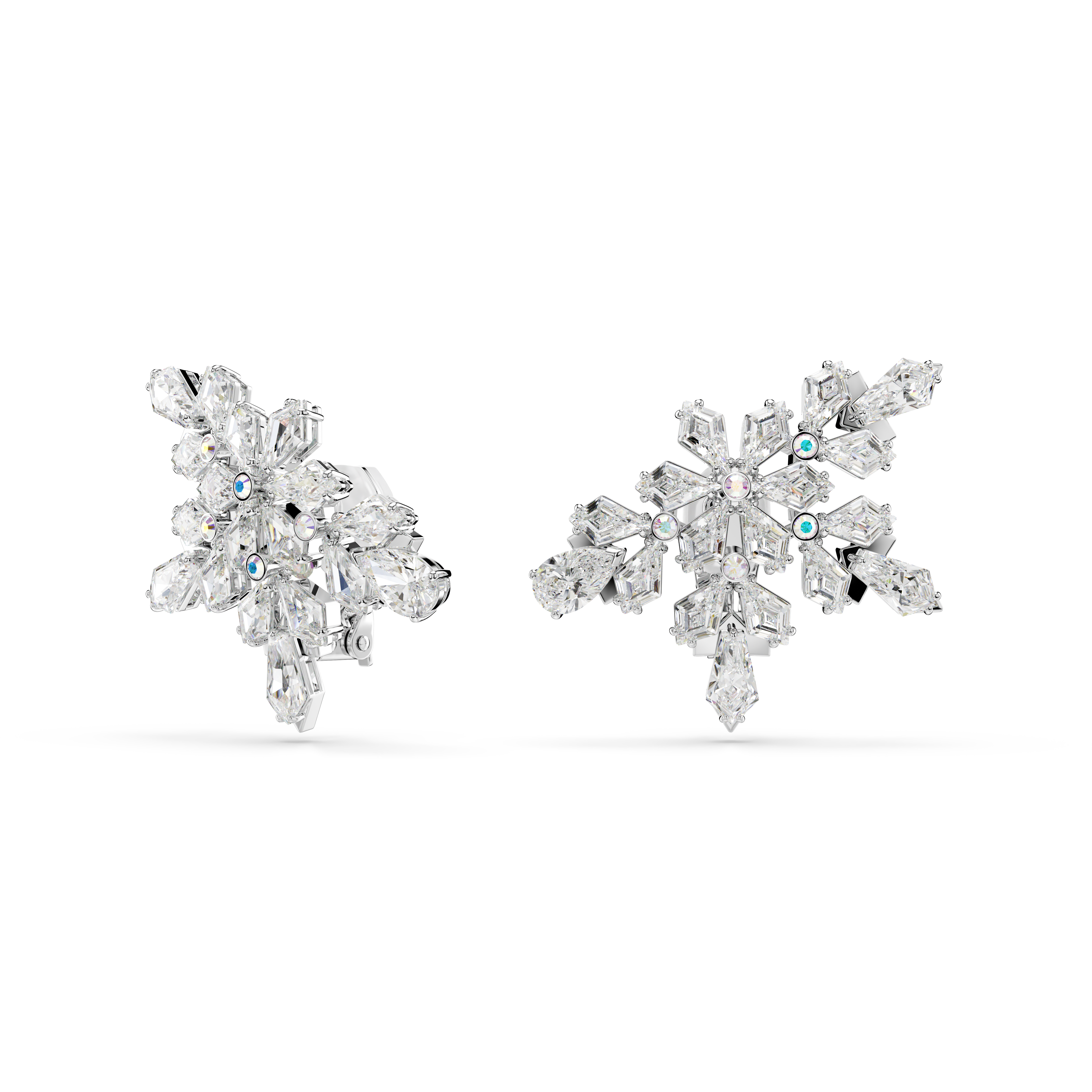 Swarovski Idyllia Clip Earrings Mixed Cuts Half Snowflake White Rhodium Plated