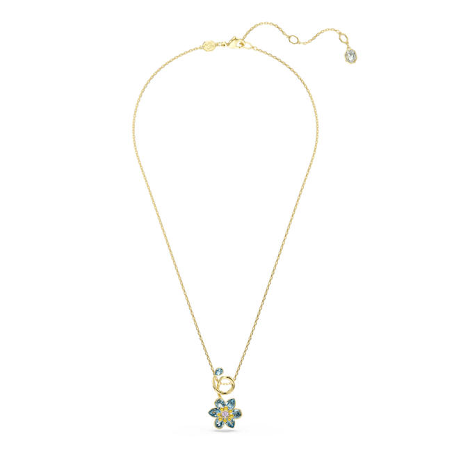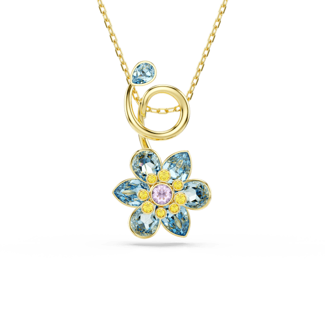 The Swarovski Idyllia pendant Mixed cuts Flower Blue gold-tone plated, This crystallized ode to nature will brighten up your look. The primary motif, suspended from a slender chain, is in the shape of a flower, with brilliant blue petals and a gold-tone plated stem. This Idyllia pendant's mix of forms and tones infuses it with excitement, boosting your attitude throughout the day.