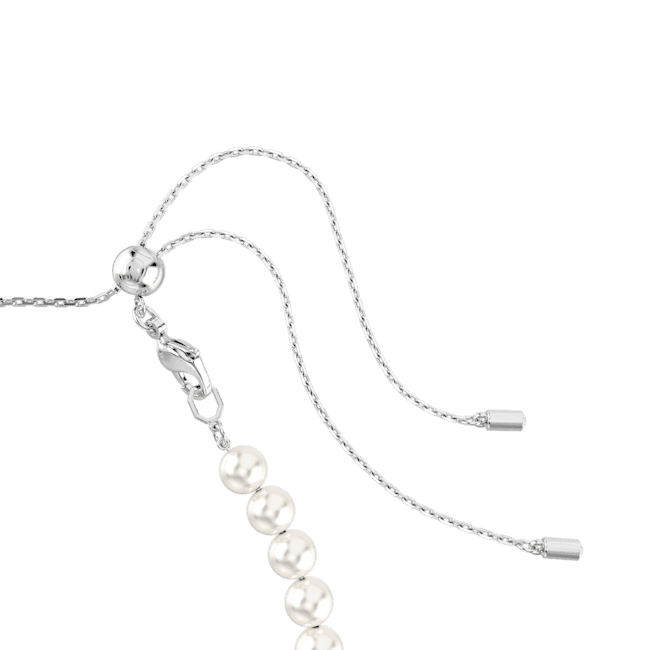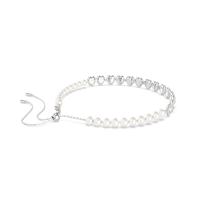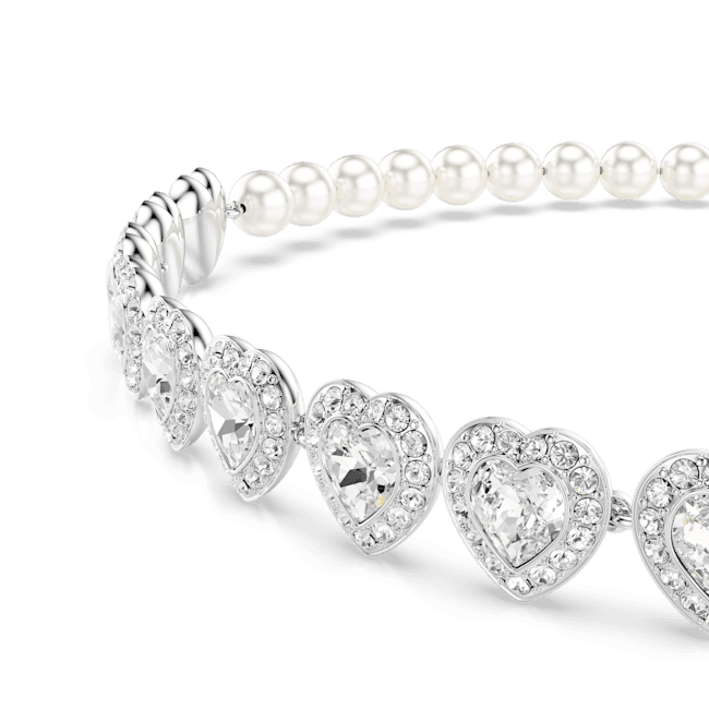 This radiant choker was made for an intense expression of love. The rhodium plated design is partly decorated with luxurious Swarovski Crystal Pearls, while at the front, there is a row of heart-shaped crystals, each surrounded by a glittering halo of clear pavé. A sliding closure at the back means you can adjust the jewelry to your perfect fit. Pair this bold necklace with other matching jewelry to create your own romantic combinations.