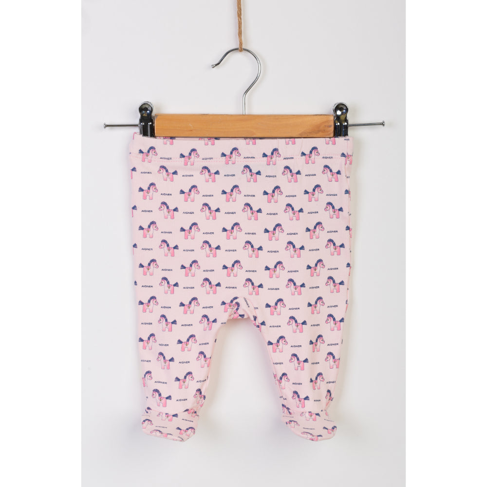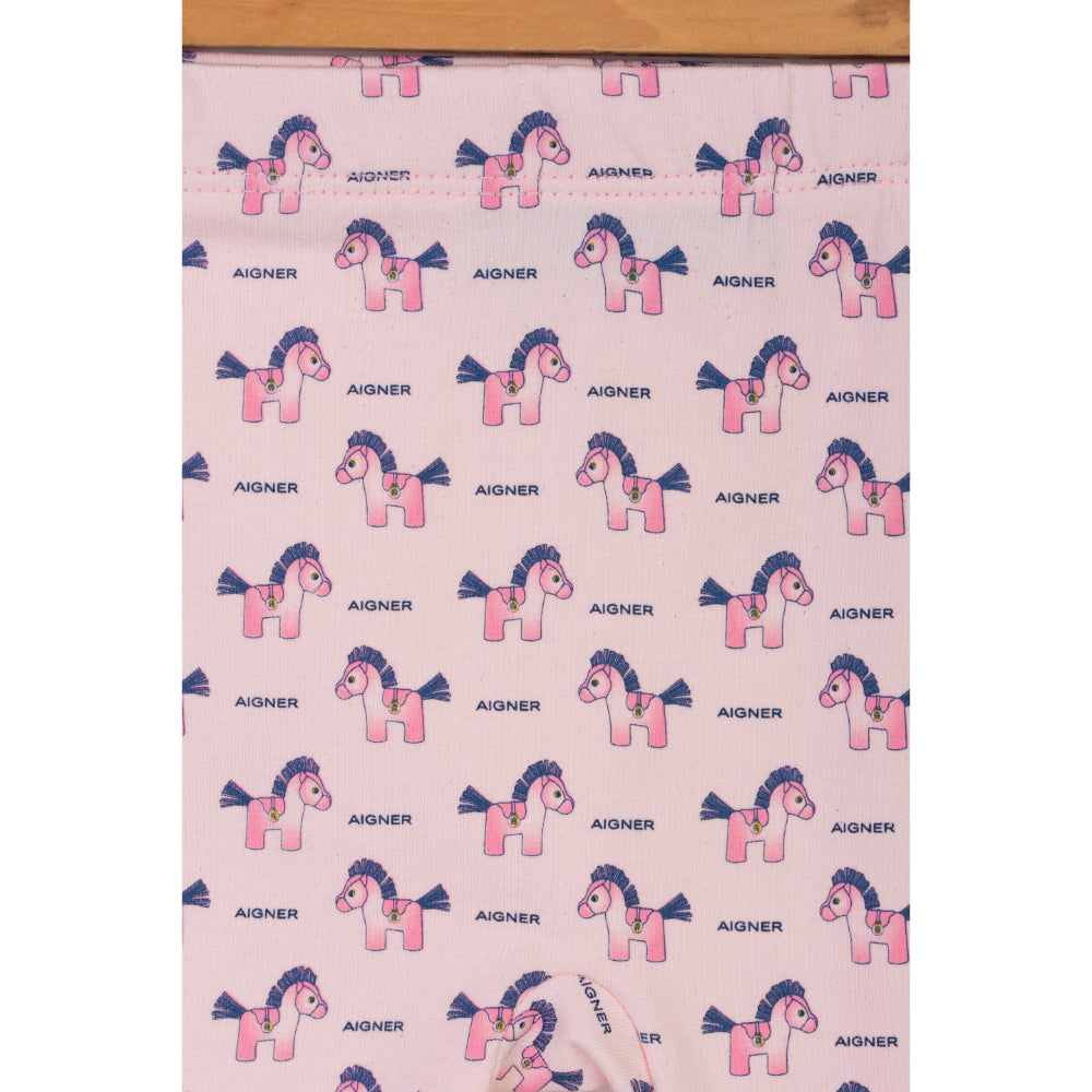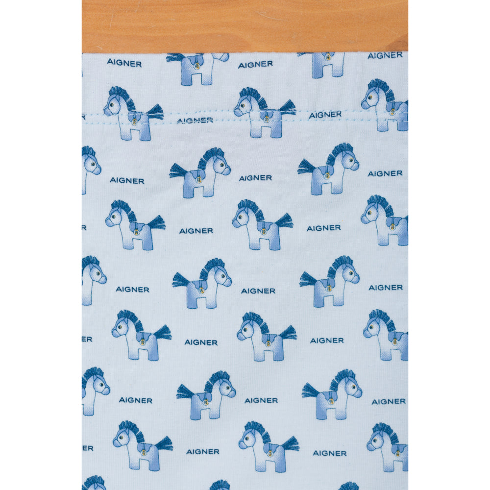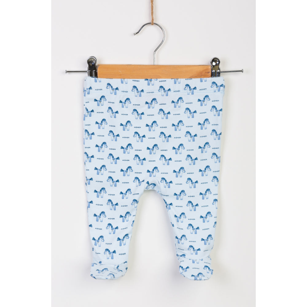 This Aigner Kids New Born Pajamas set is perfect for your little one. The t-shirt features a round neck and a straight hem, with long sleeves and a print of a horse and the Aigner logo on the front and bottom. The pajama pants have an elasticated waistband for a comfortable fit. Made of a soft, breathable cotton blend, this set is sure to keep your little one cozy and warm all night. SPECIFICATIONS: