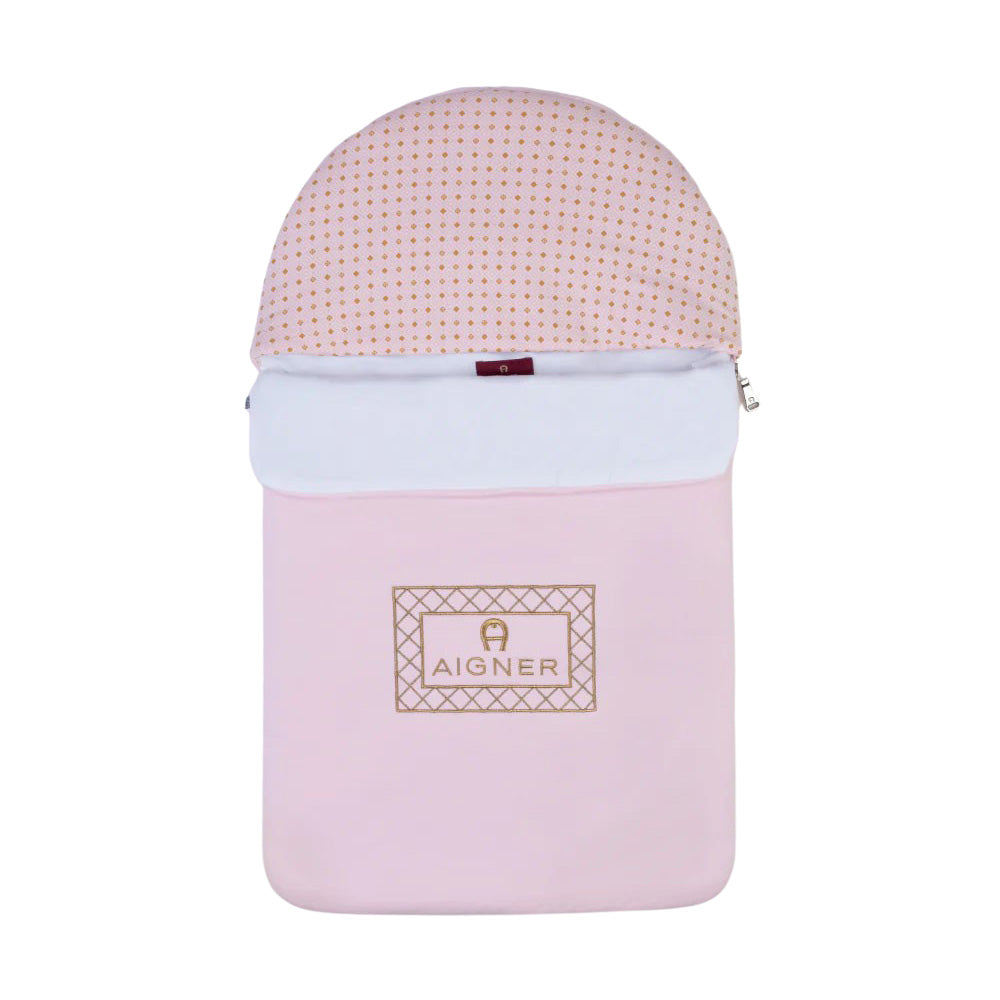This hooded nest by AIGNER is perfect for keeping baby boys warm and cozy. It is made of the highest quality Pima cotton jersey, which is super soft and padded for extra warmth. The hood is decorated with monogram pattern and front embellished with embroidered brand logo in gold that adds to the charm of the nest. The nest fastens securely with a branded metal zip that runs along the side and bottom, ensuring your little one stays snug while they sleep. SPECIFICATIONS: