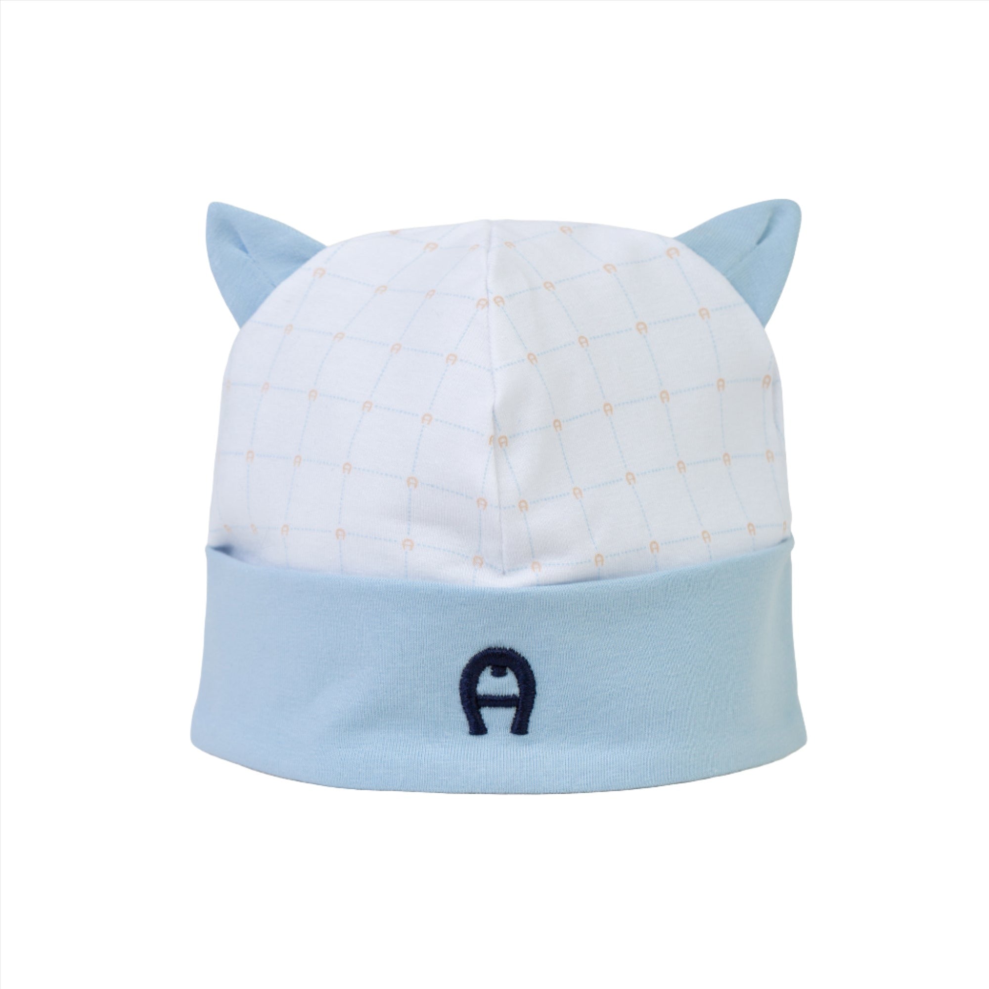 This Aigner Kids New Born Boy's Set is the perfect addition to any baby boy's wardrobe. Made from super soft and comfortable cotton jersey, it will keep the baby cozy and warm. The set includes a sleepsuit with a crew neck and long sleeves, featuring the signature 'A' horseshoe logos and a cute horse print on the front. The sleepsuit also has convenient popper fastenings on the back and between the legs for easy dressing and changing. To complete the look, this set also comes with a matching hat. It showcases a tiny logo, check pattern, and a navy blue embroidered logo on the brim. The most adorable feature of the hat is the cute ears on the top, making it not only practical but also stylish. This Aigner Kids New Born Boy's Set is perfect for any occasion and will make a great gift for expecting parents. Your little one will look absolutely charming in this set and feel comfortable all day long.