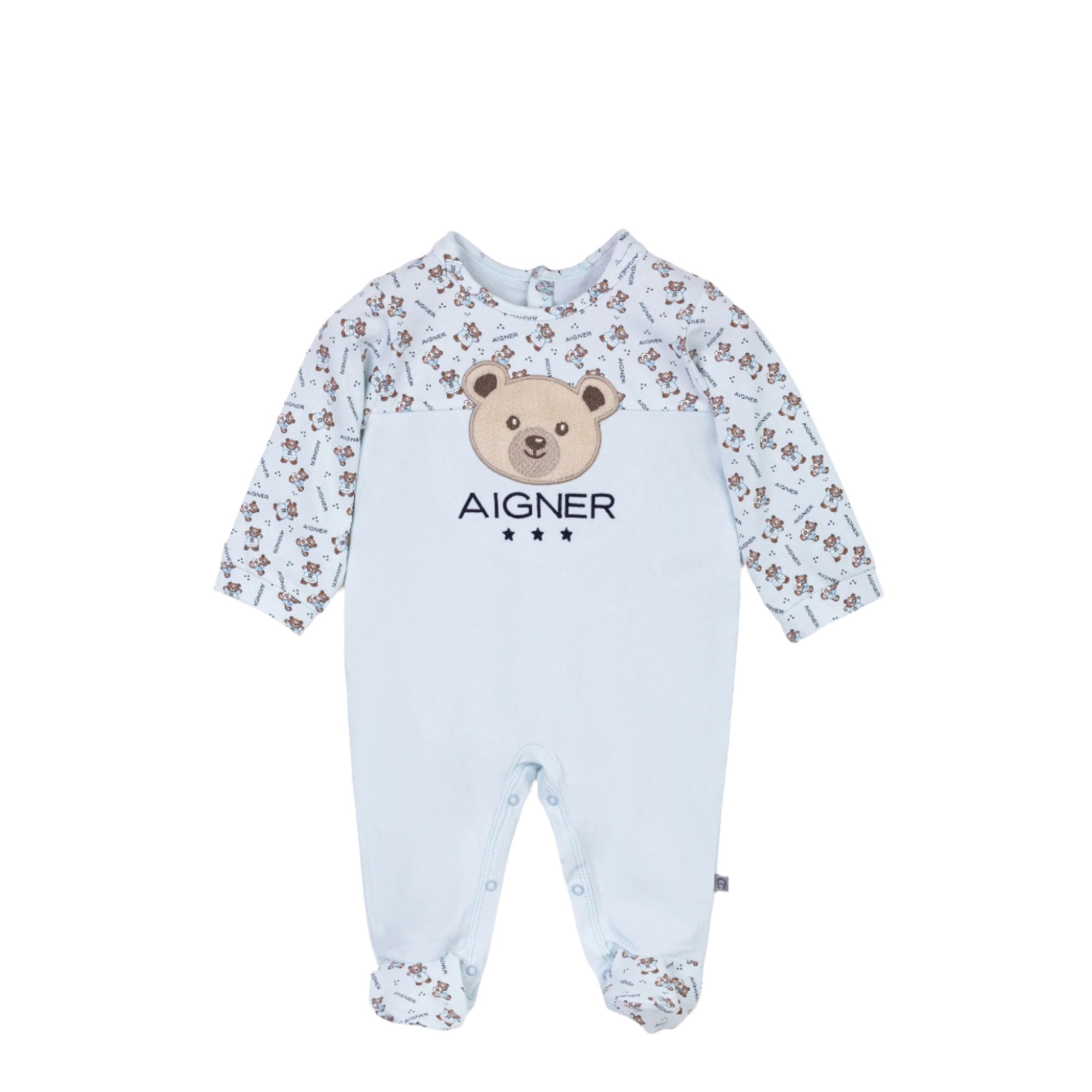 The Aigner Kids New Born Set of Sleepsuit, Bib, and Hat is a must-have for any new parent looking to dress their little one in luxury and style.