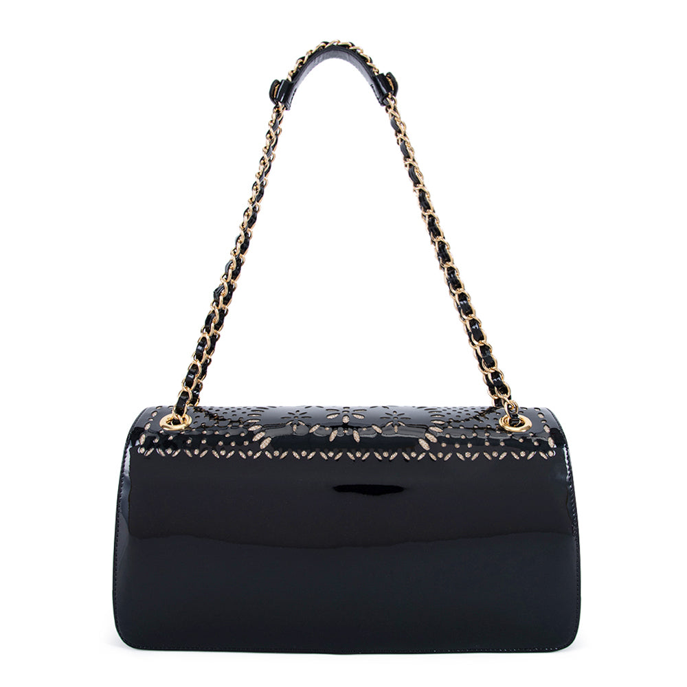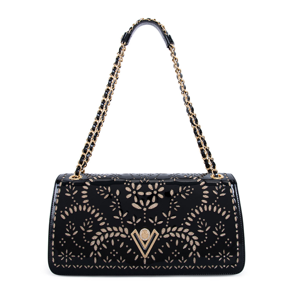Valentino Orlandi Women's Black Leather Patent Shoulder Bag