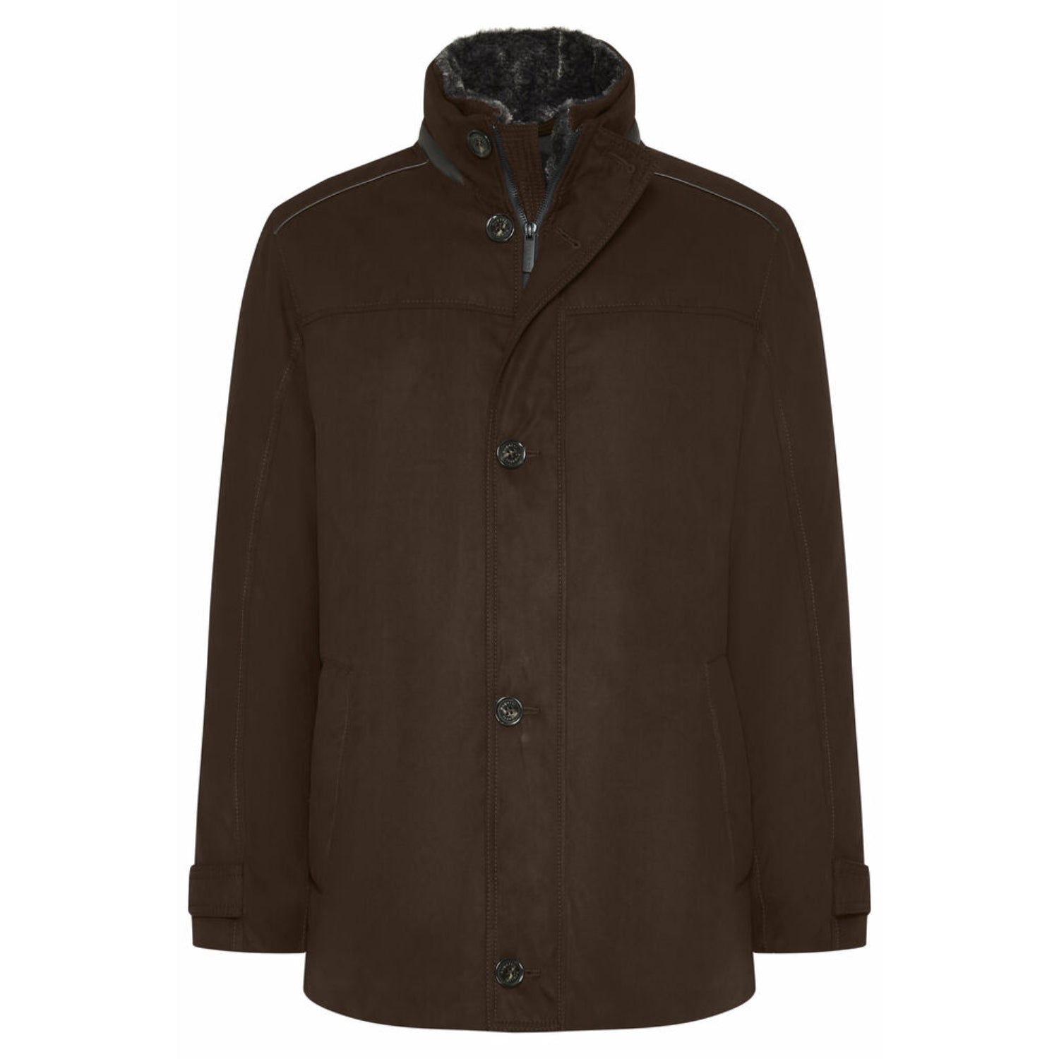 | The Bugatti Men's Brown Ecodainetto Padded Jacket is an elegant and functional outerwear option for men. Made with a luxurious suede-look material, this jacket is designed to provide both style and practicality. Its soft texture gives a luxurious feel, while the removable fur inner collar offers adaptability for different weather conditions. The adjustable button cuffs provide a customizable fit, and the subtle Bugatti logo on the back of the collar adds a touch of sophistication. Suitable for both formal and casual occasions, this coat is perfect for adding a touch of refinement to any outfit. SPECIFICATIONS • Brand: Bugatti • Gender: Men • Elegant and functional outerwear option • Made with luxurious suede-look material • Provides both style and practicality • Soft texture for a luxurious feel • Removable fur inner collar for adaptability • Adjustable button cuffs for a customizable fit • Subtle Bugatti logo on back of collar • Suitable for formal and casual occasions • Adds a touch of refinement to any outfit • Composition: 100% Polyester • Washing Instructions: Machine wash 30*C • Do not bleach • Do not tumble dry • Professional dry clean |