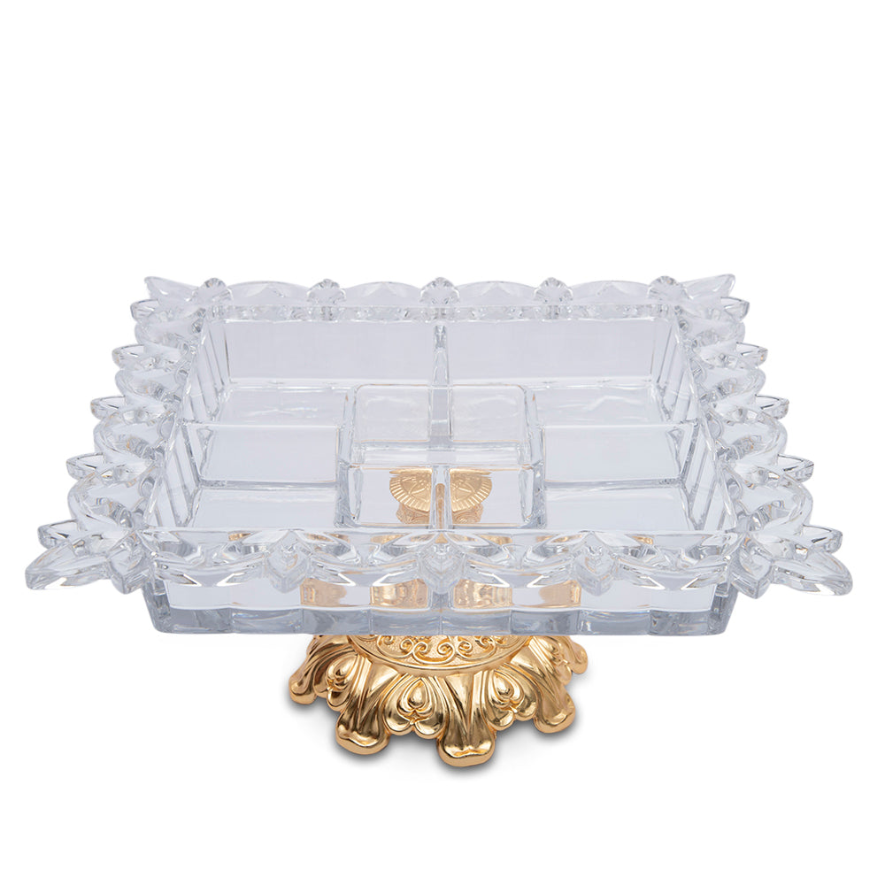 Cristal De Paris Pickle Dish 5 Parts On Gold Metal Base 35x35x11 Cm