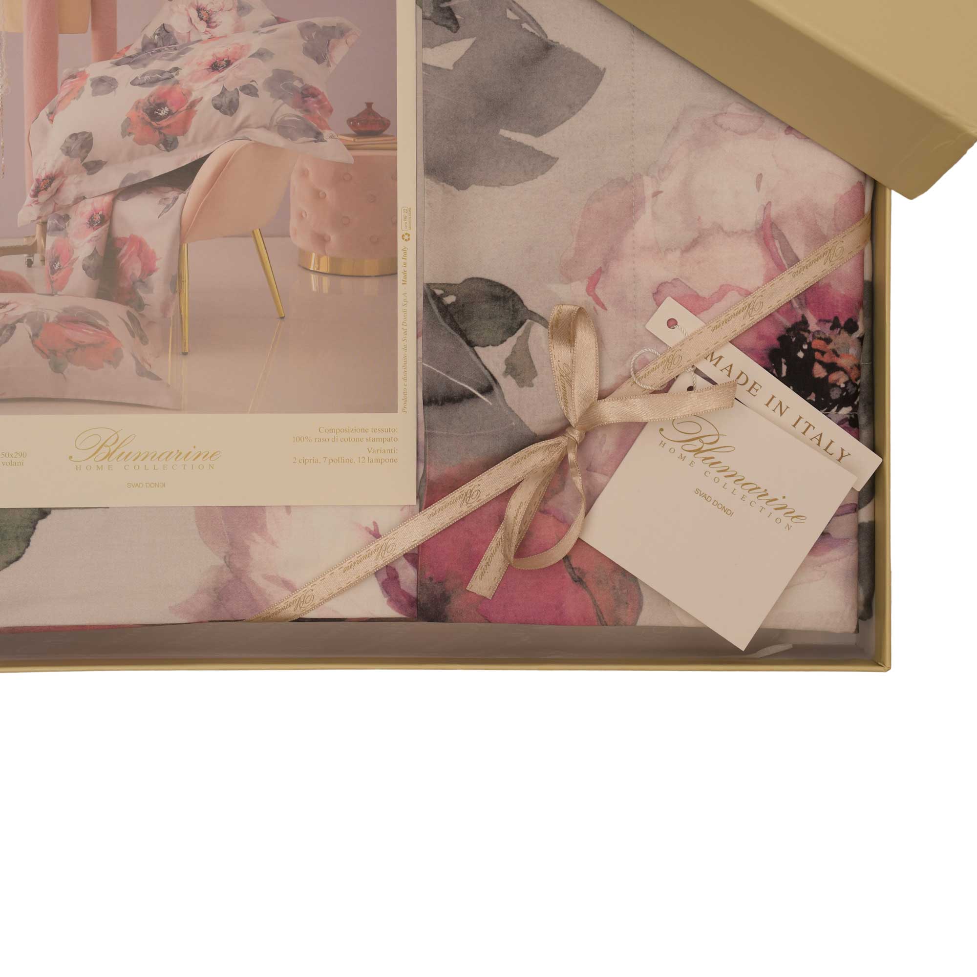 | The Blumarine Comforter Bluvelvet Double Bed and Sheet Set in floral print is an exquisite set of bedding to give your bedroom a luxurious and elegant look. The comforter has an all-over print featuring the iconic Blumarine logo and is finished with a beautiful crystal. The set also includes a cotton satin sheet set with a Blumarine logo. This set comes in a beautiful gift pack, making it the perfect gift for a special someone. SPECIFICATIONS :