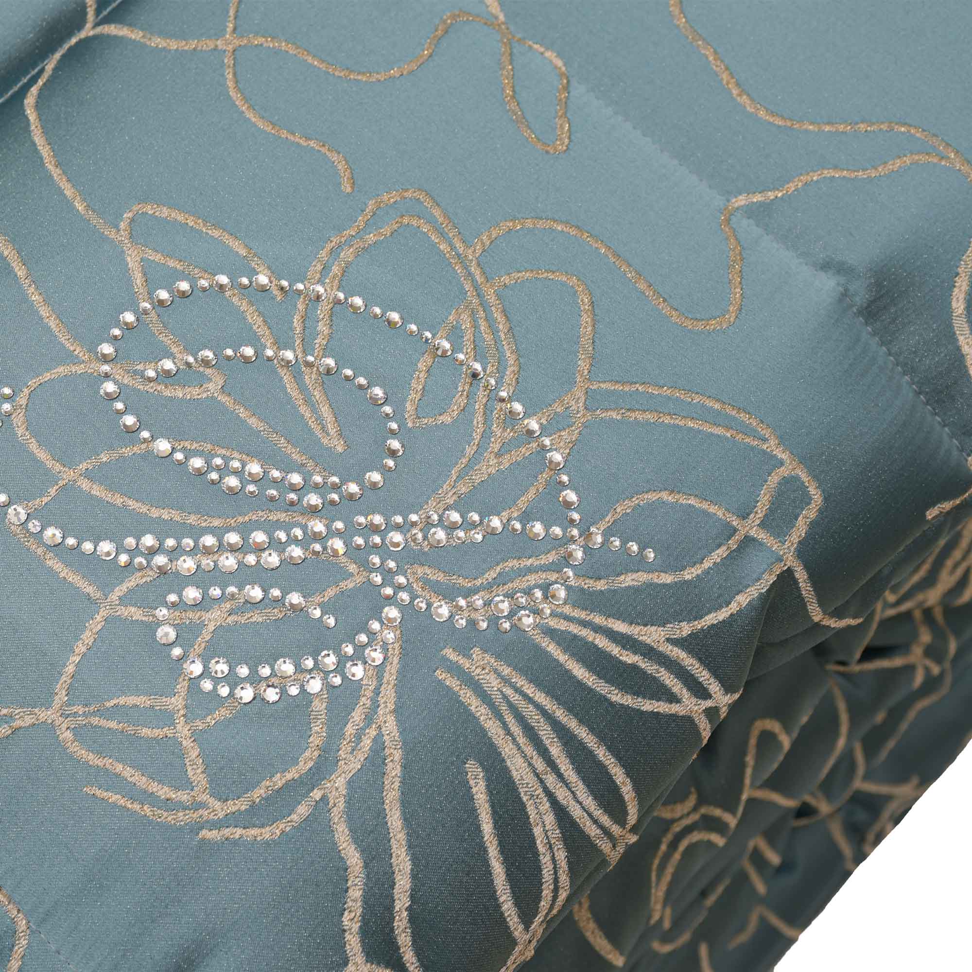| The Blumarine Comforter Julia Double Bed and Sheet Set is an exquisite set of bedding to give your bedroom a luxurious and elegant look. The comforter has an all-over print featuring the iconic Blumarine logo and is finished with a beautiful crystal. The set also includes a cotton satin sheet set with a Blumarine logo. This set comes in a beautiful gift pack, making it the perfect gift for a special someone. SPECIFICATIONS :