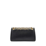 Elevate your style with the luxurious Orlandi Valentino Quilted Leather Shoulder Bag. This exquisite handbag showcases the brand's signature craftsmanship and elegant design. Crafted from premium black leather, it features a unique quilted pattern with gold-tone accents, creating a striking visual appeal. The iconic Valentino Orlandi logo plaque at the front adds a touch of sophistication. The interwoven leather and gold-tone chain strap offers a chic and comfortable carrying option, perfect for both day and evening wear. The spacious interior is lined and includes pockets to keep your essentials organized. This bag is a timeless addition to any discerning wardrobe.