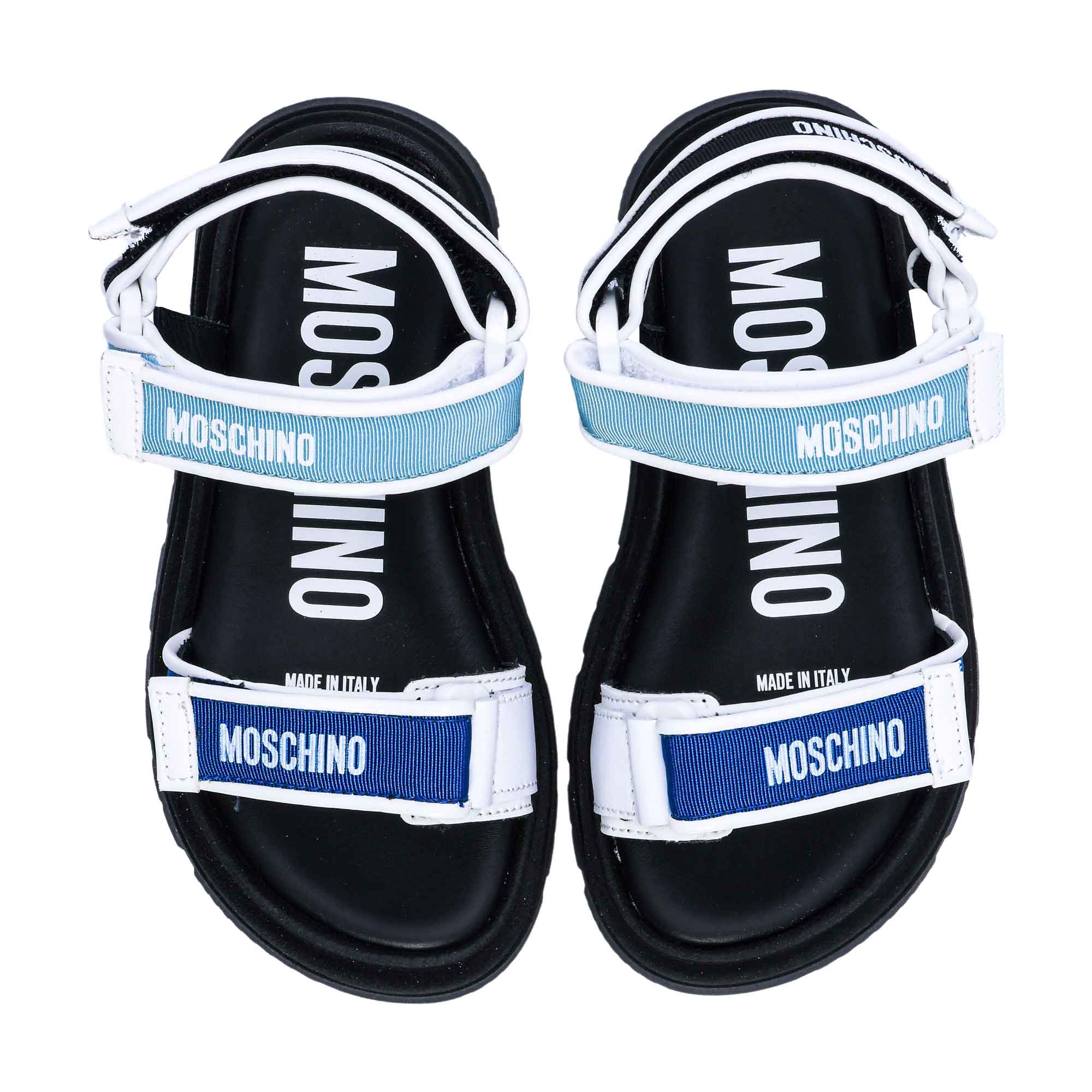 Moschino Kids Boy's Blue Logo Touch Strap Sandal