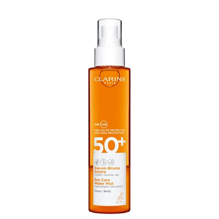 Clarins Sun Care Water Mist SPF 50 is a lightweight, refreshing sunscreen spray designed to provide high protection against harmful UV rays. Its water-like texture allows for easy application and quick absorption, leaving the skin feeling hydrated without any greasy residue. Infused with a blend of soothing plant extracts, it helps to protect the skin from sun damage while maintaining a comfortable and non-oily finish. Ideal for all skin types, it is suitable for both face and body, and its practical mist format makes it perfect for on-the-go sun protection. The formula is water-resistant and helps preserve the skin's natural beauty during sun exposure.