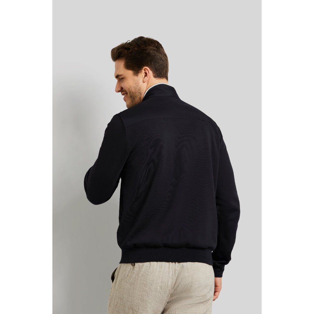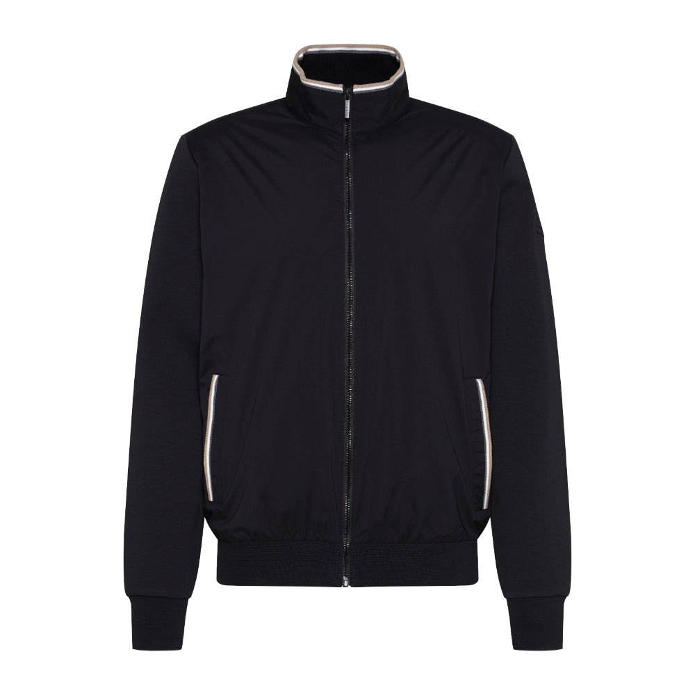 - Sweat jacket with a contrasting color on the collar and pockets. Stretch nylon front. Black Bugatti rubber badge on the sleeve.