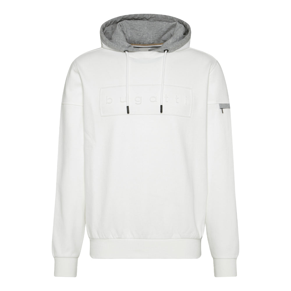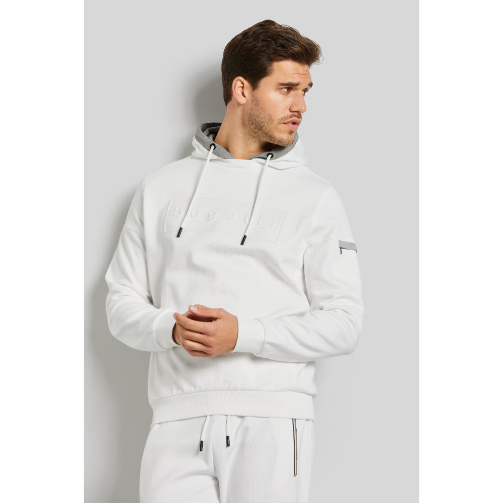 - Hoodie with an embossed Bugatti chest logo and black drawstring and drawstring eyelets. Contrasting gray color on the inside of the hood.